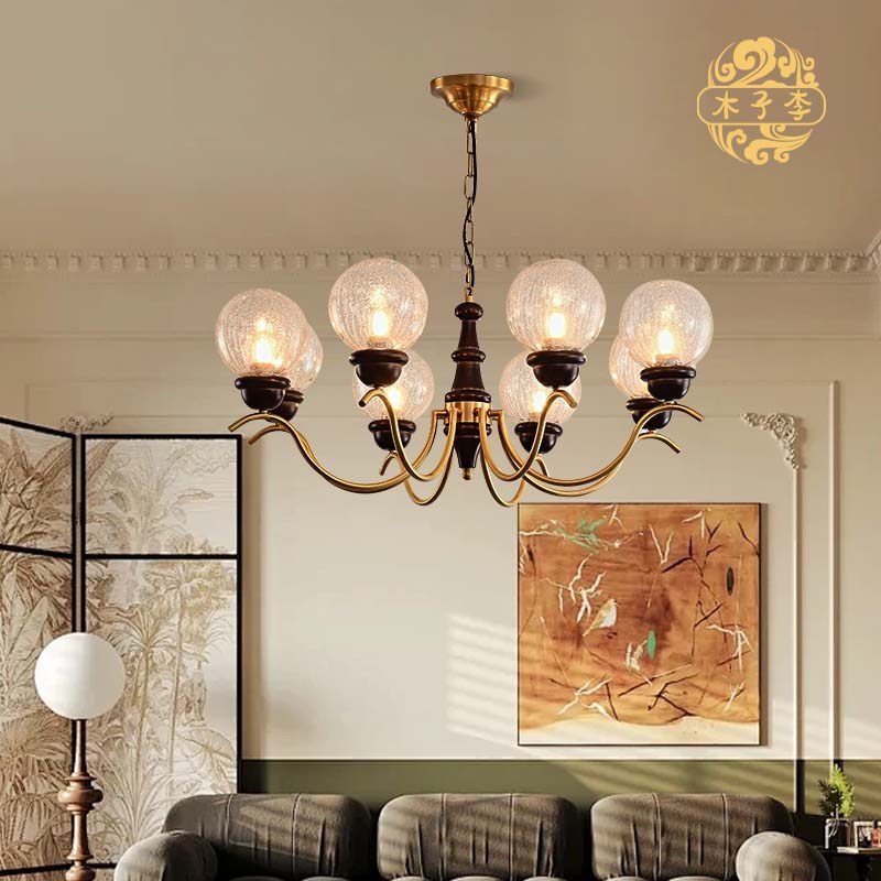 法式中古客厅吊灯餐厅灯r美式复古南洋全铜实木高级感大气卧室灯