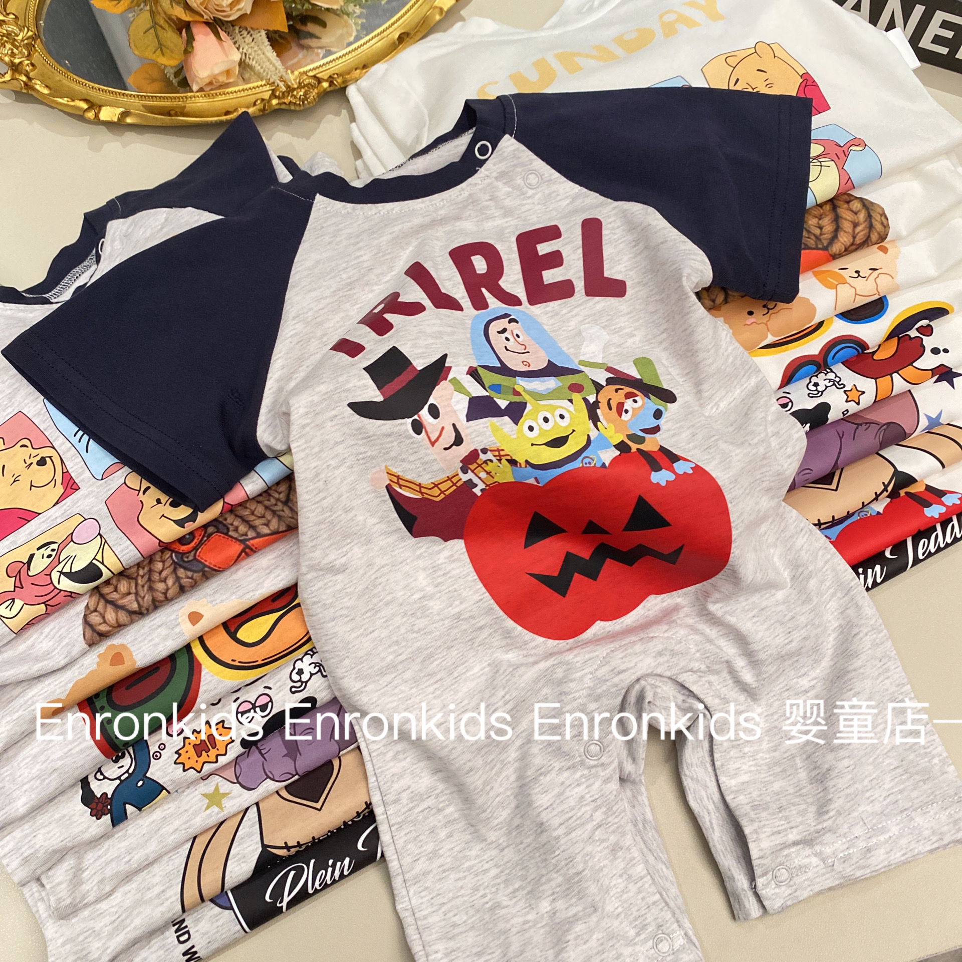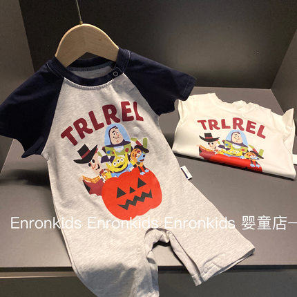 婴儿夏季连体衣薄款潮牌卡通图案男女宝宝爬服休闲衣服6个月超萌