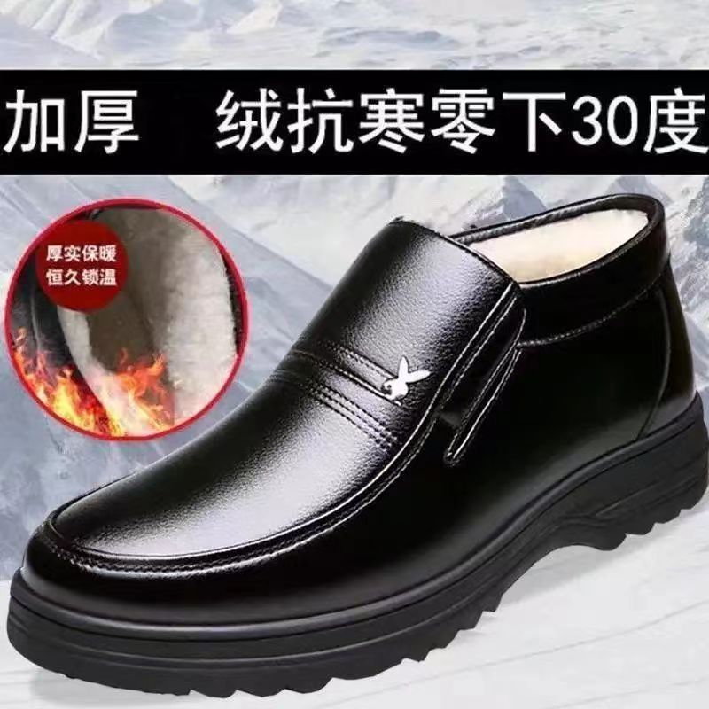男冬季加绒加厚棉鞋真皮保暖男士棉皮鞋防水防滑老人中老年爸爸鞋