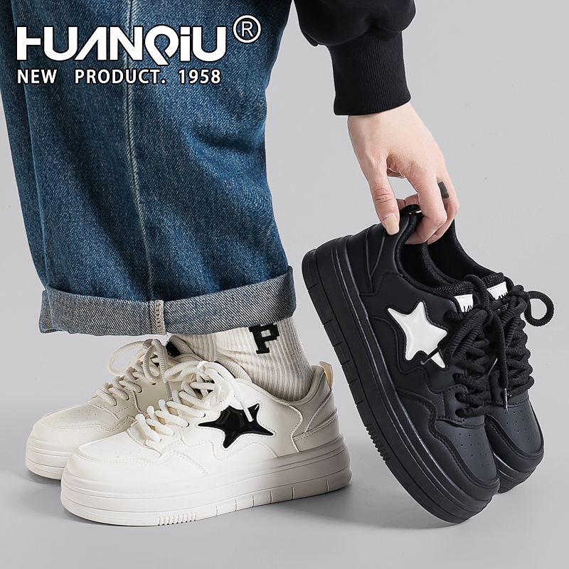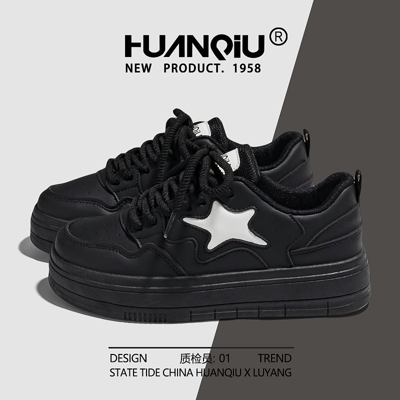 环球黑色鞋子女2025秋季新款运动休闲小黑鞋百搭小众原创星星板鞋