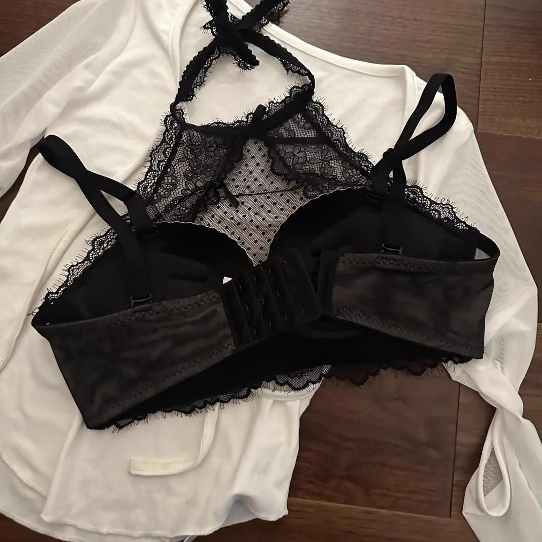 纯欲蕾丝挂脖内衣女小胸聚拢显大性感内搭遮副乳无钢圈法式文胸罩
