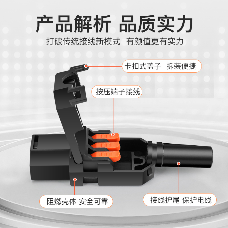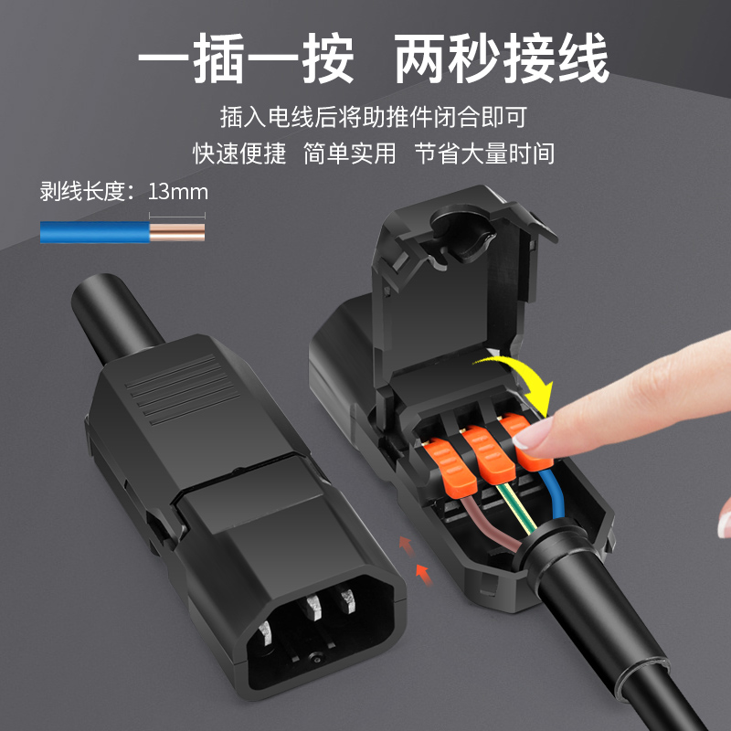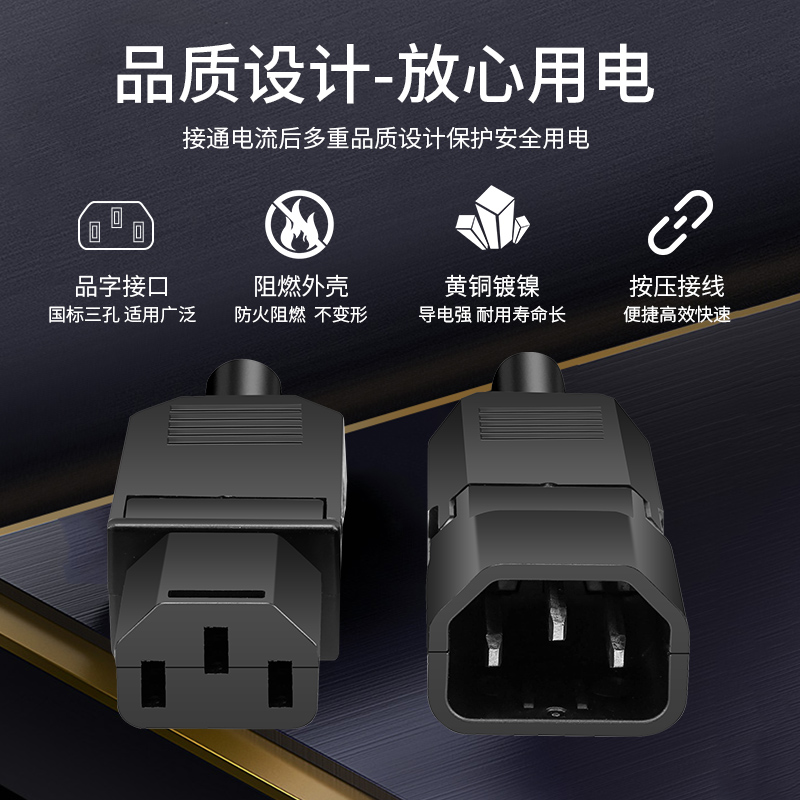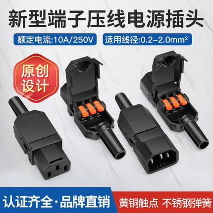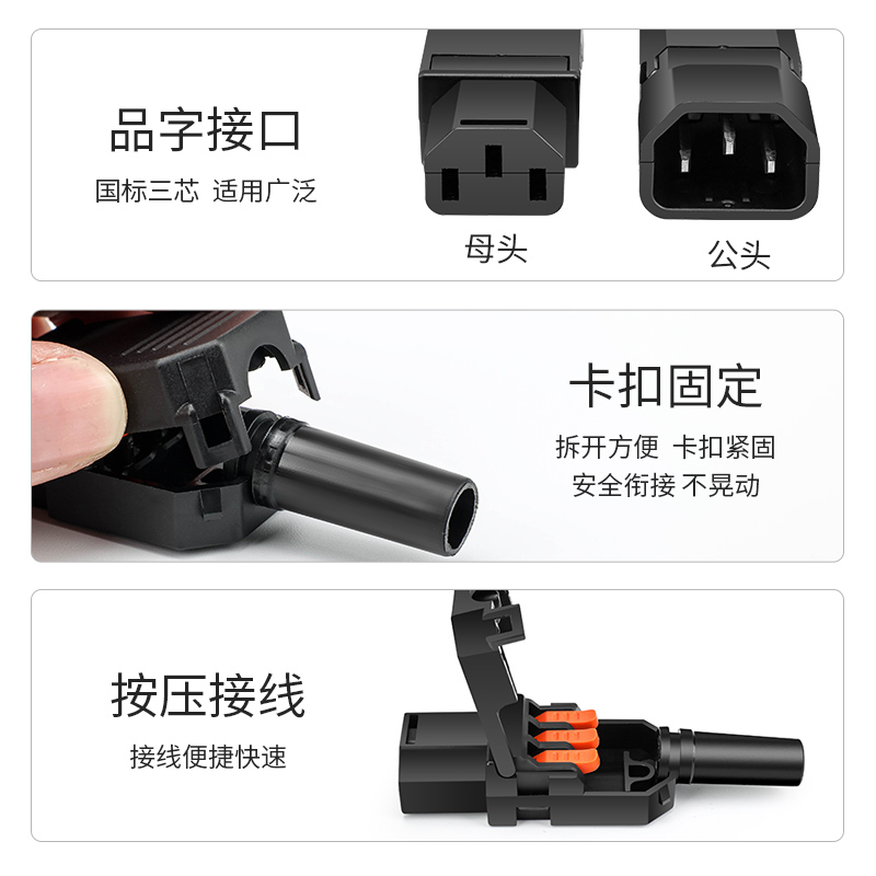 新型端子压线AC电源插头10A/250V三孔三针品字插头公母对接充电头