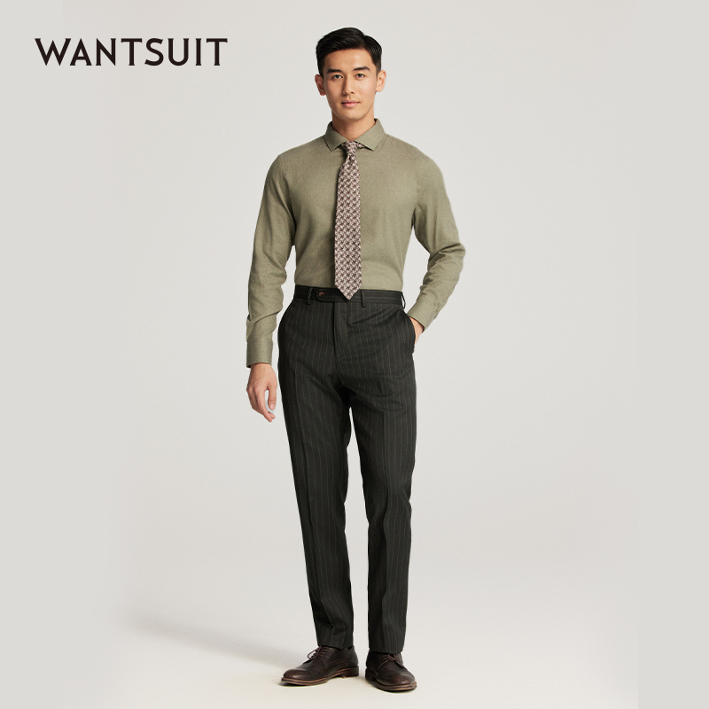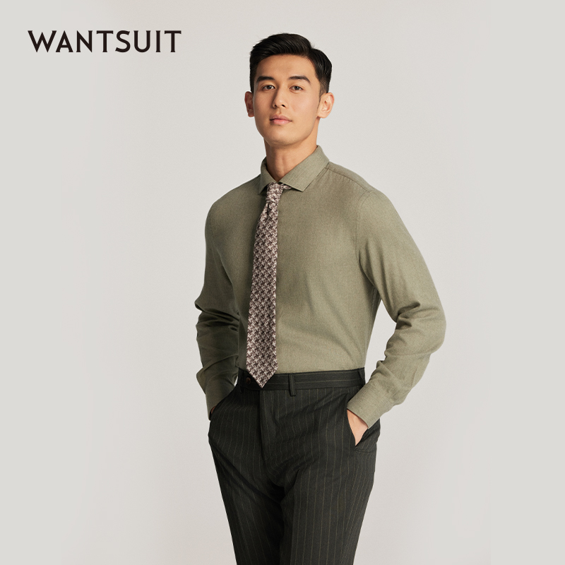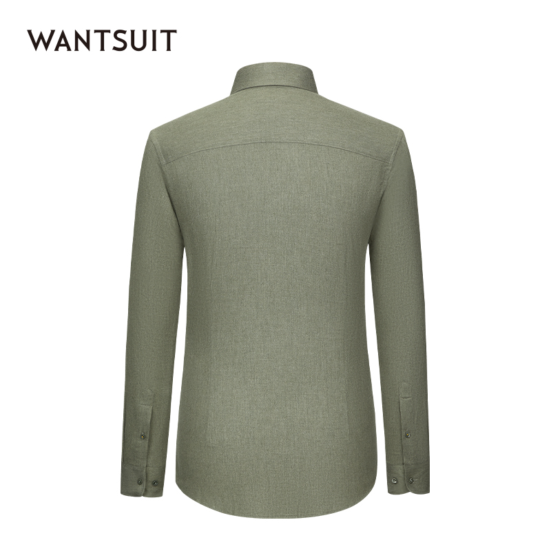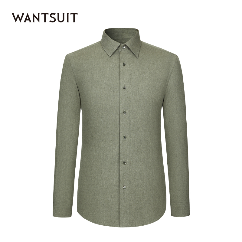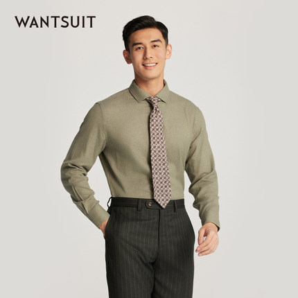 WANTSUIT秋冬男士通勤墨绿磨毛净面衬衫婚礼新郎商务老钱上班订婚