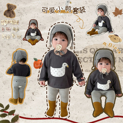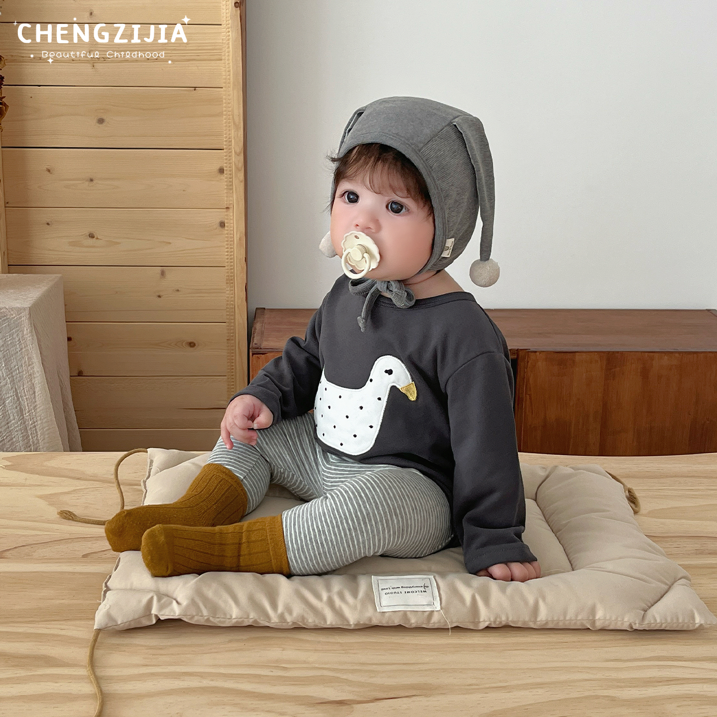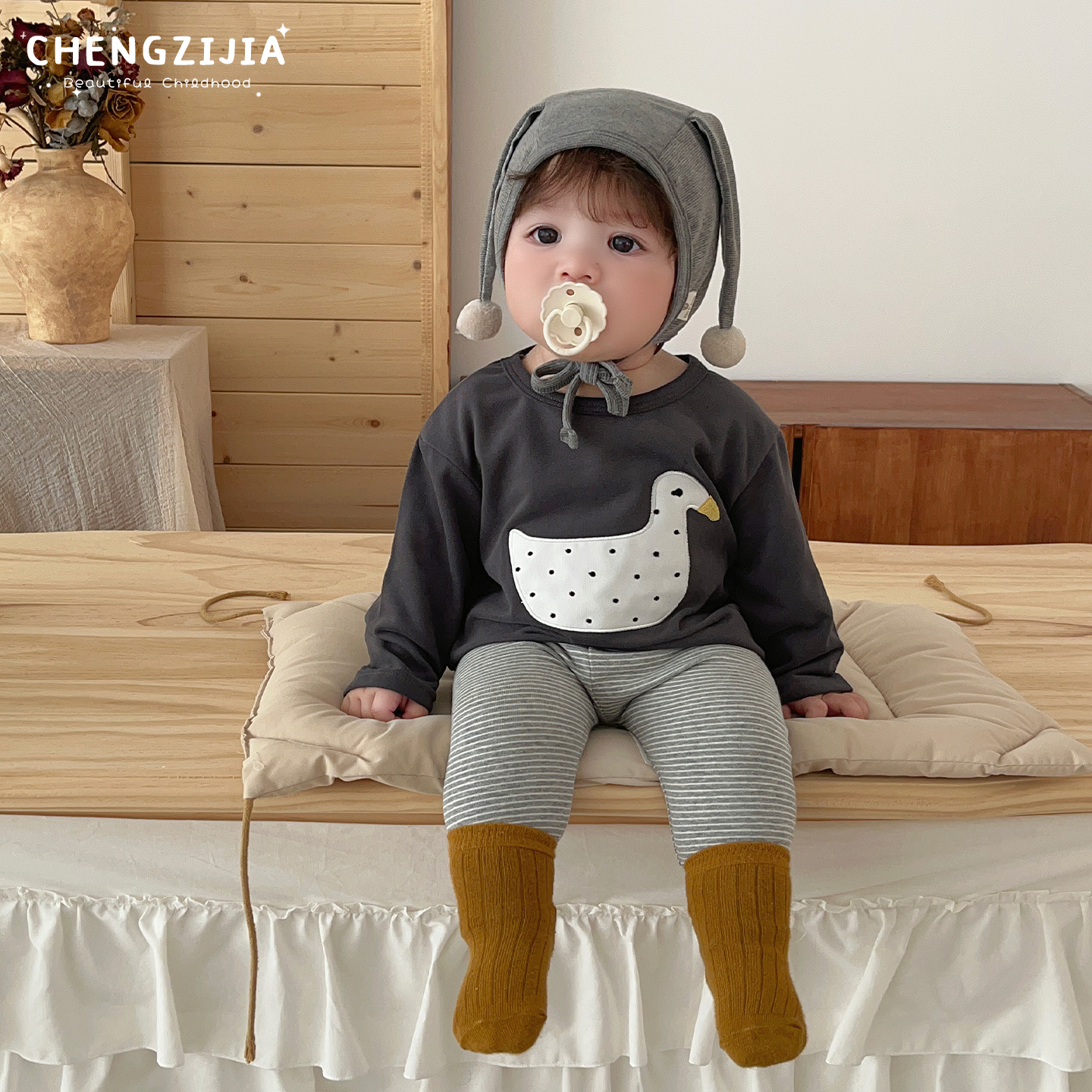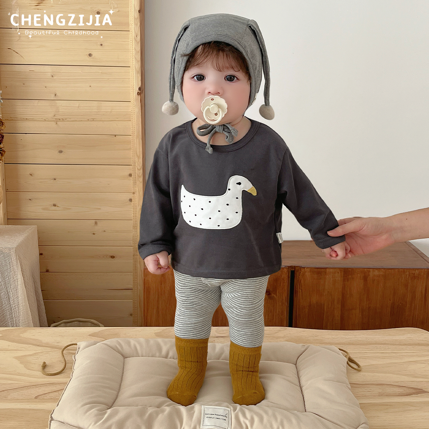 男童春秋款新款套装男宝宝可爱卡通长袖打底衫婴儿韩系条纹打底裤