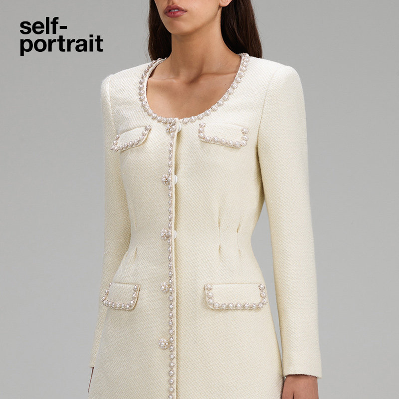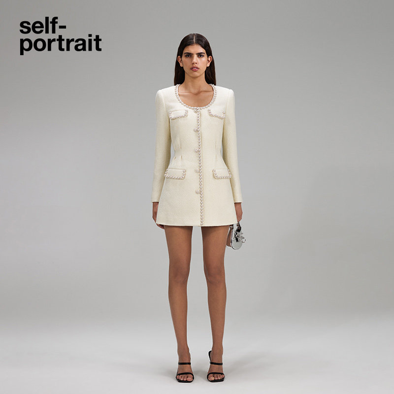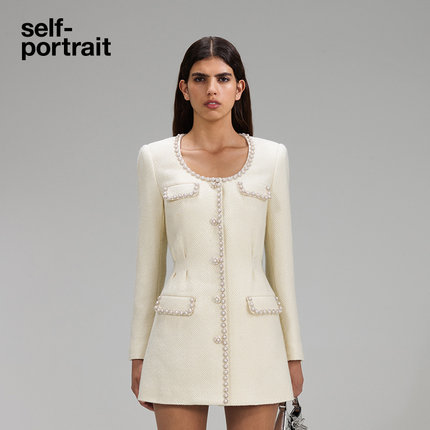 【唐艺昕同款】self-portrait 象牙白珠饰边千金风收腰连衣裙