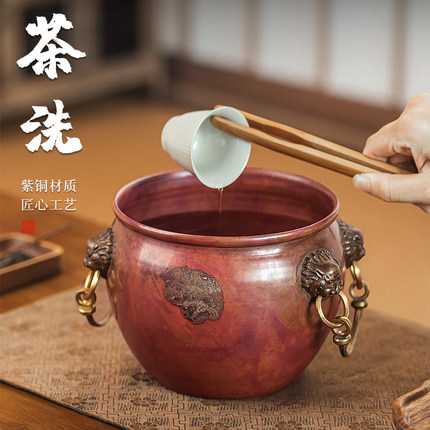 高端紫铜茶洗纯铜大容量茶渣缸复古建水大号水盂废水桶烟灰缸笔洗