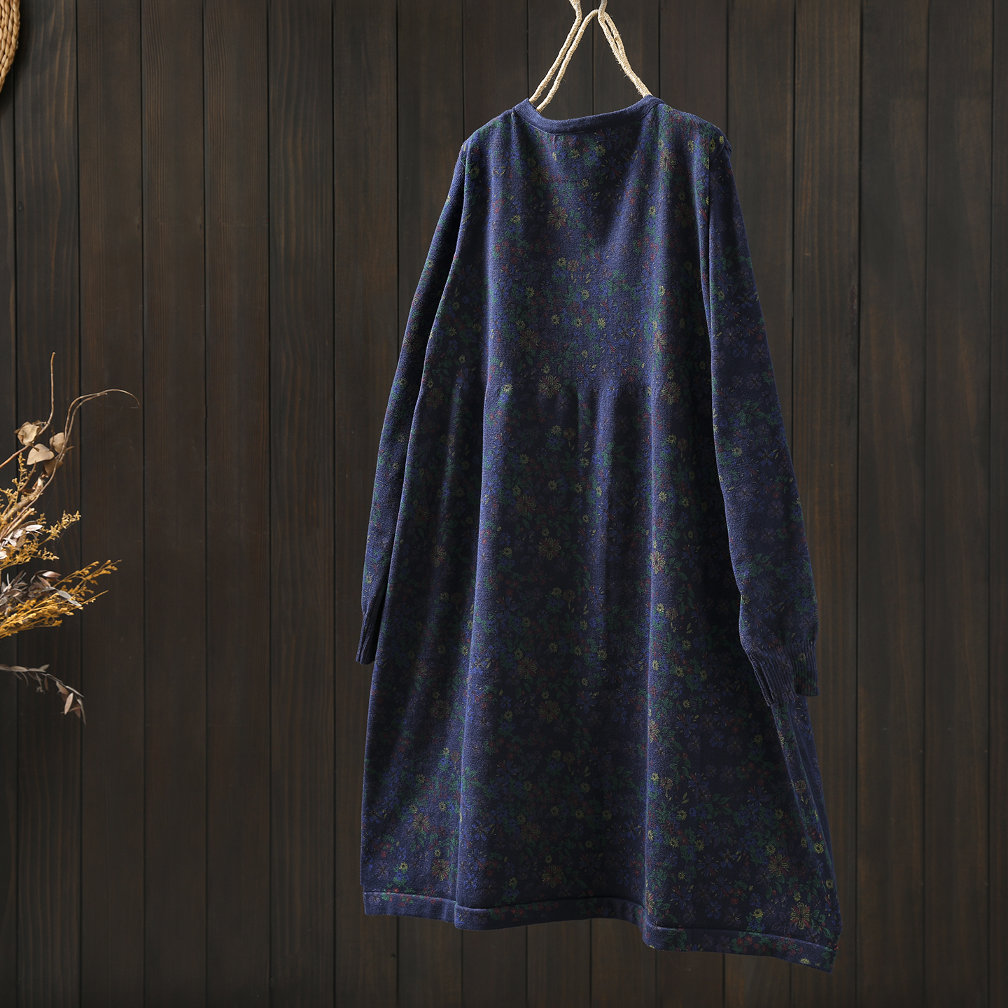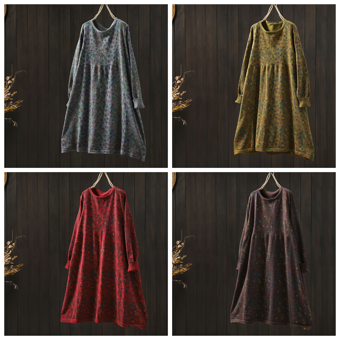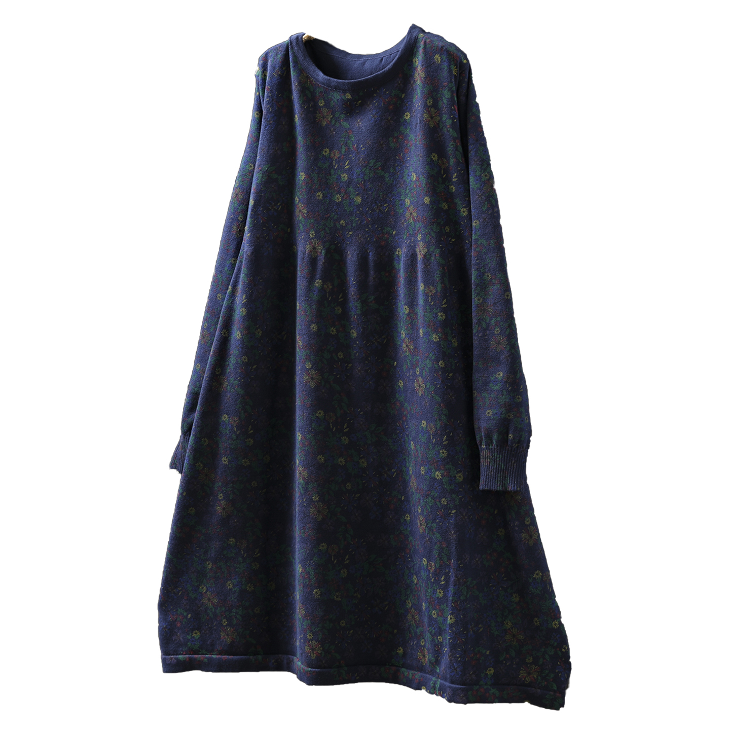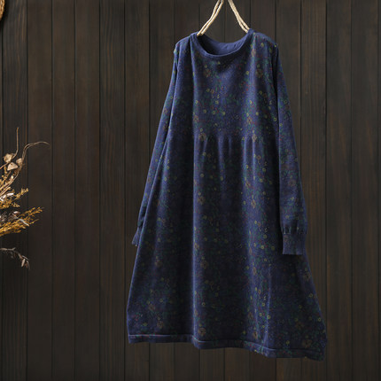 巨好看的秋冬季连衣裙女2025新款碎花棉线针织复古宽松慵懒风长裙