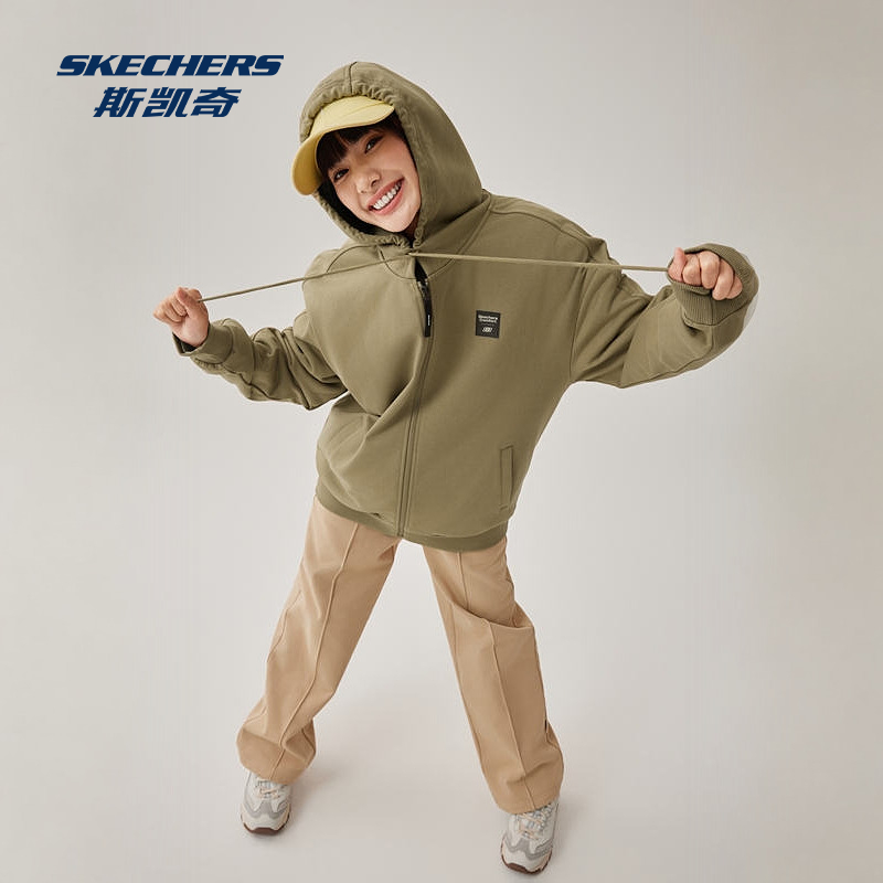 Skechers斯凯奇男女款秋季新款保暖连帽开衫卫衣简约针织休闲外套