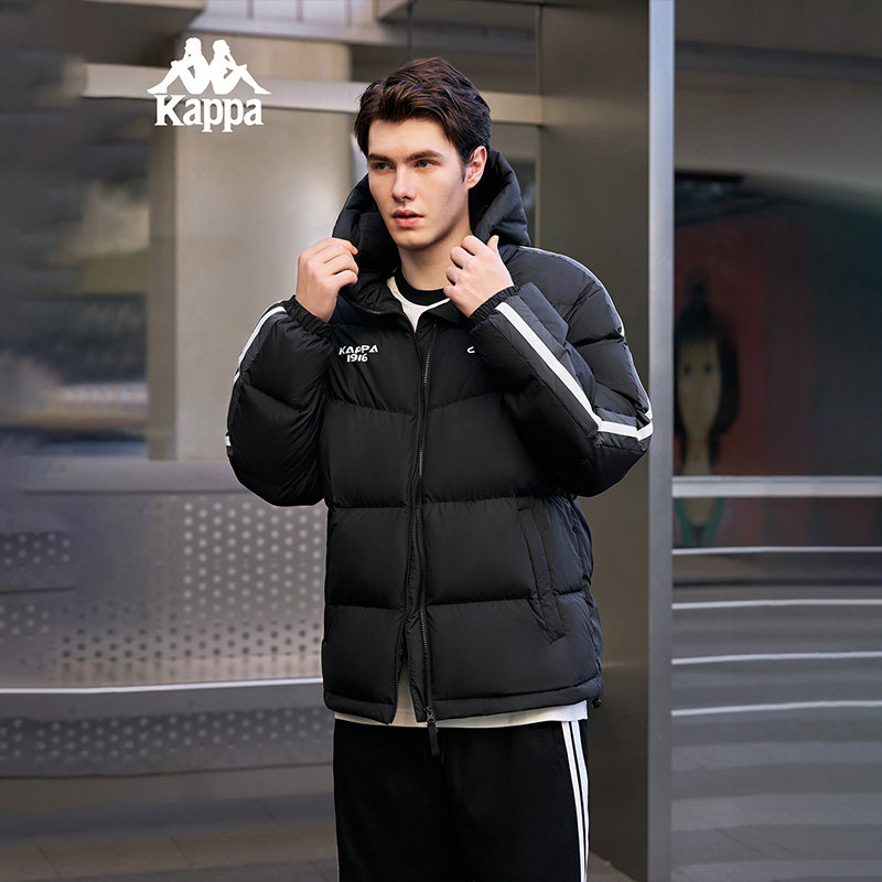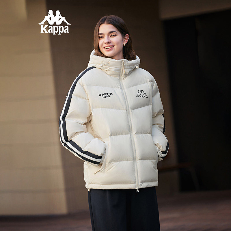Kappa卡帕男装女装2025冬季新款保暖连帽条纹羽绒服K0FZ2YY08D