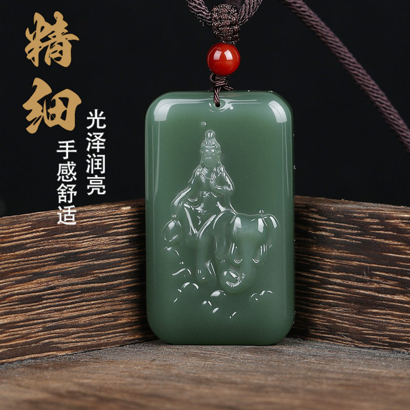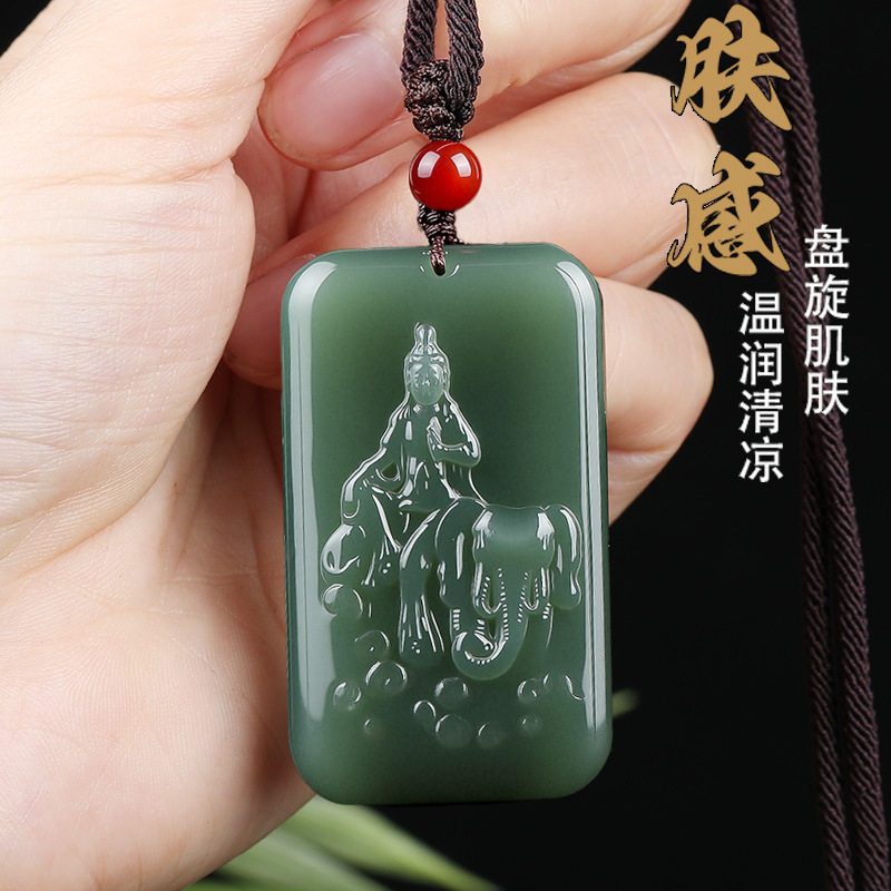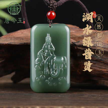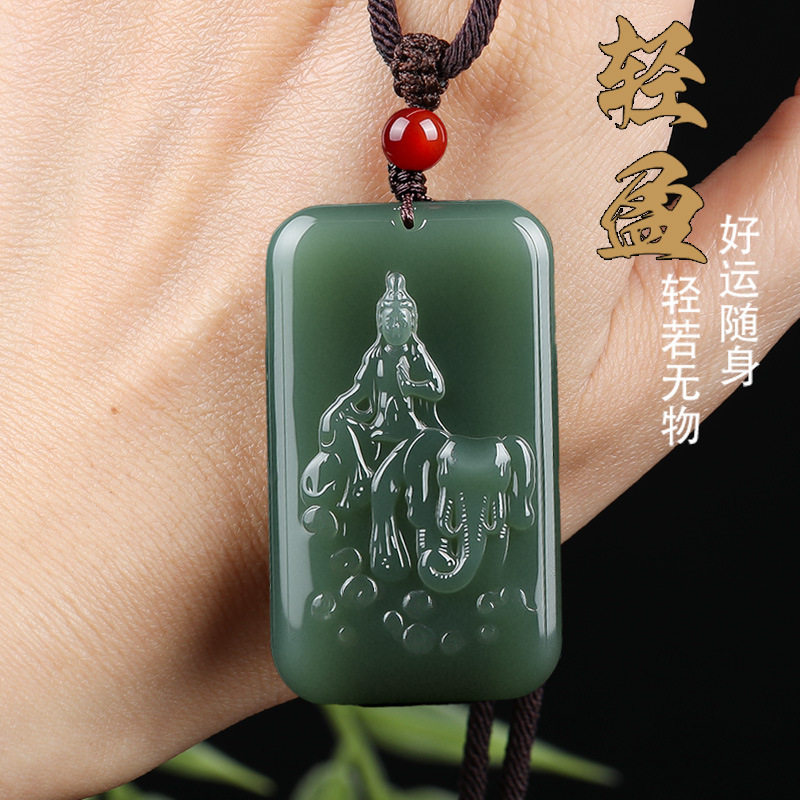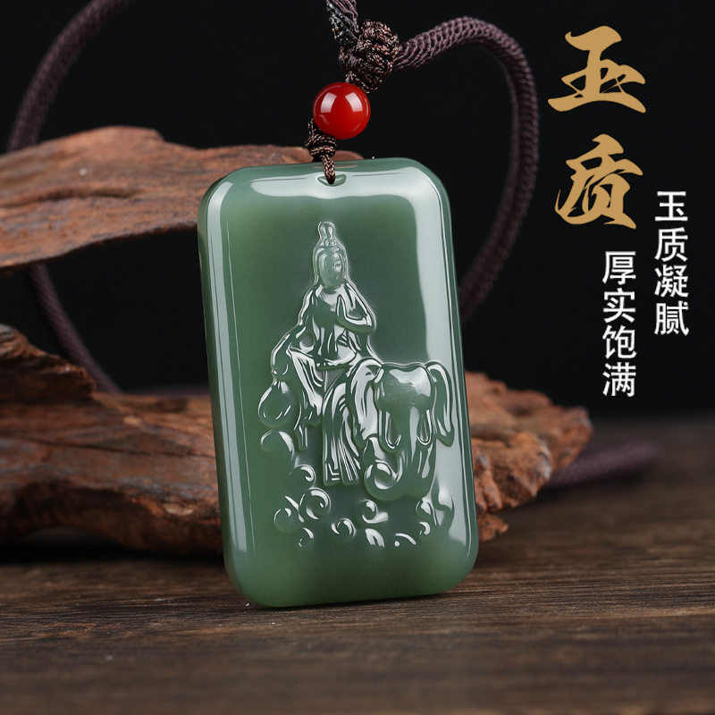 唐今玉新疆和田玉普贤观音吊坠男玉石玉器青玉观音老坑玉牌玉佩挂