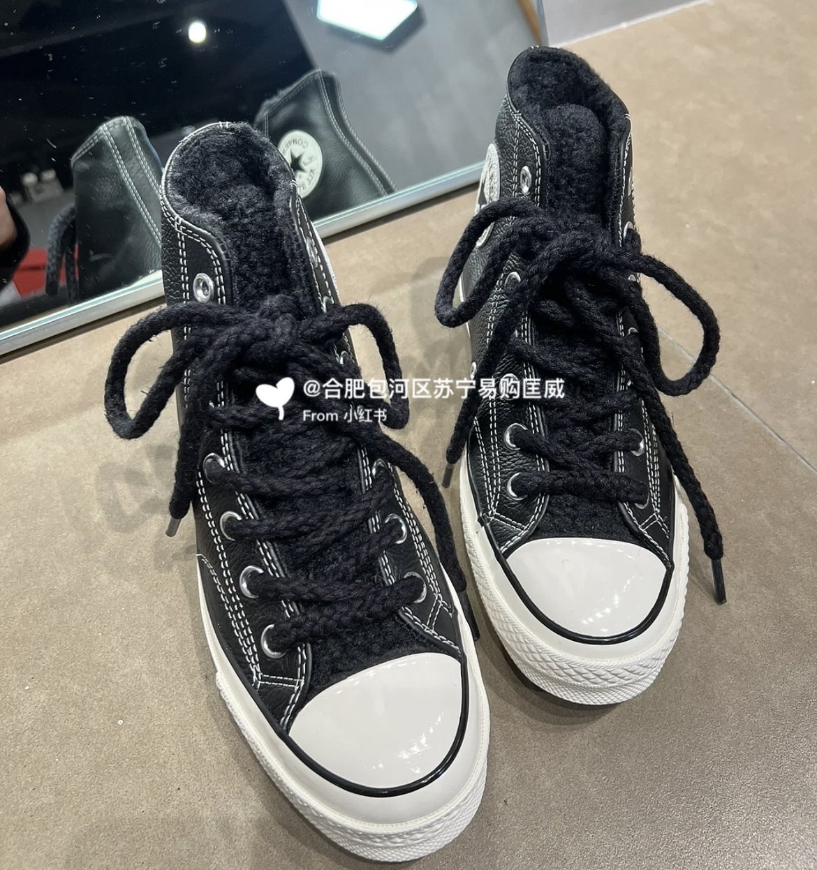 适配converse匡威1970s帆布鞋皮面羊羔毛黑色粗圆形麻绳鞋带鞋绳