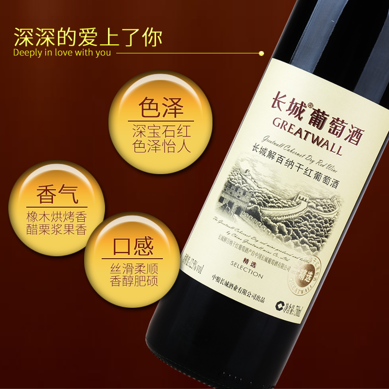 国产红酒中粮长城精选解百纳干红