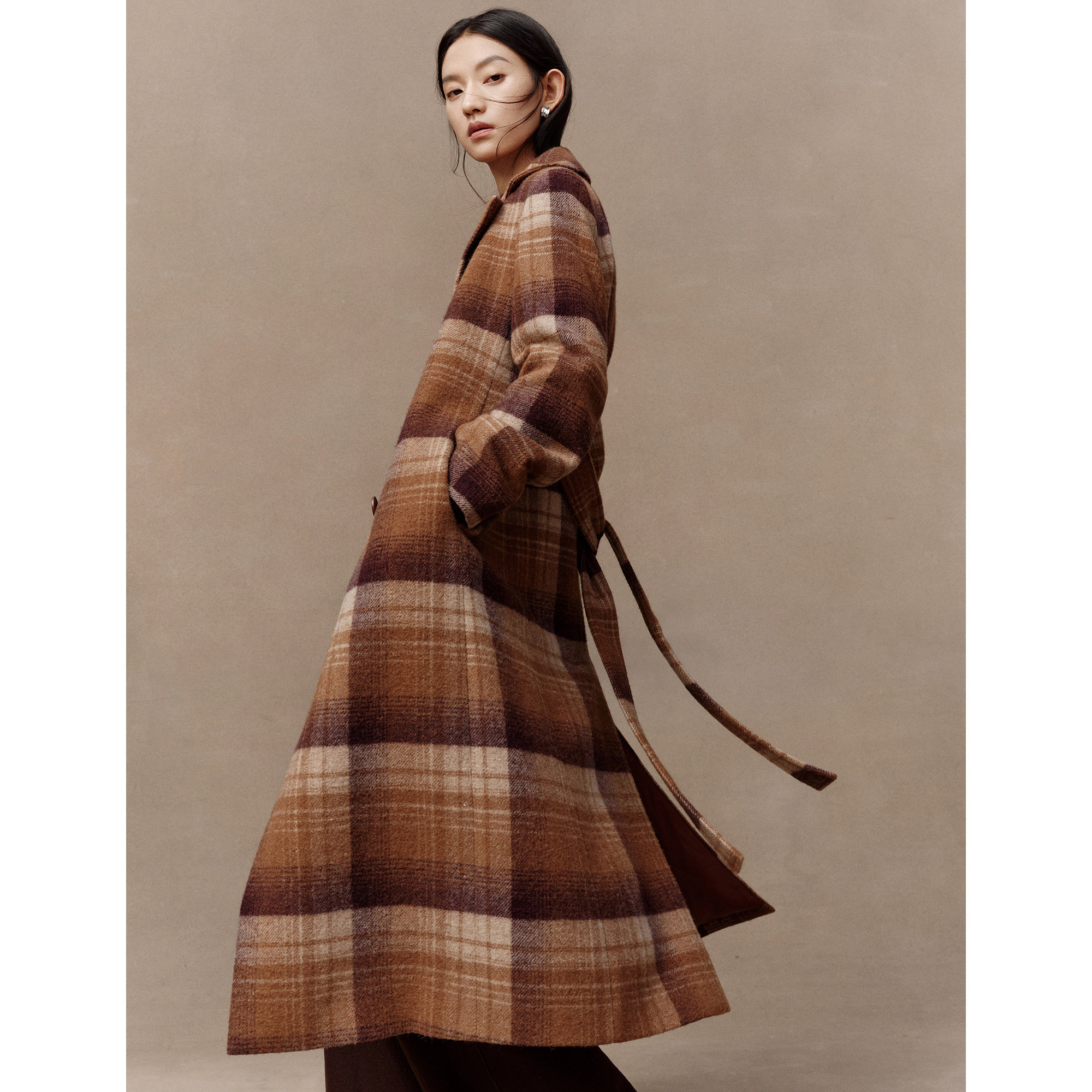 珂思花纱毛织中长款呢外套