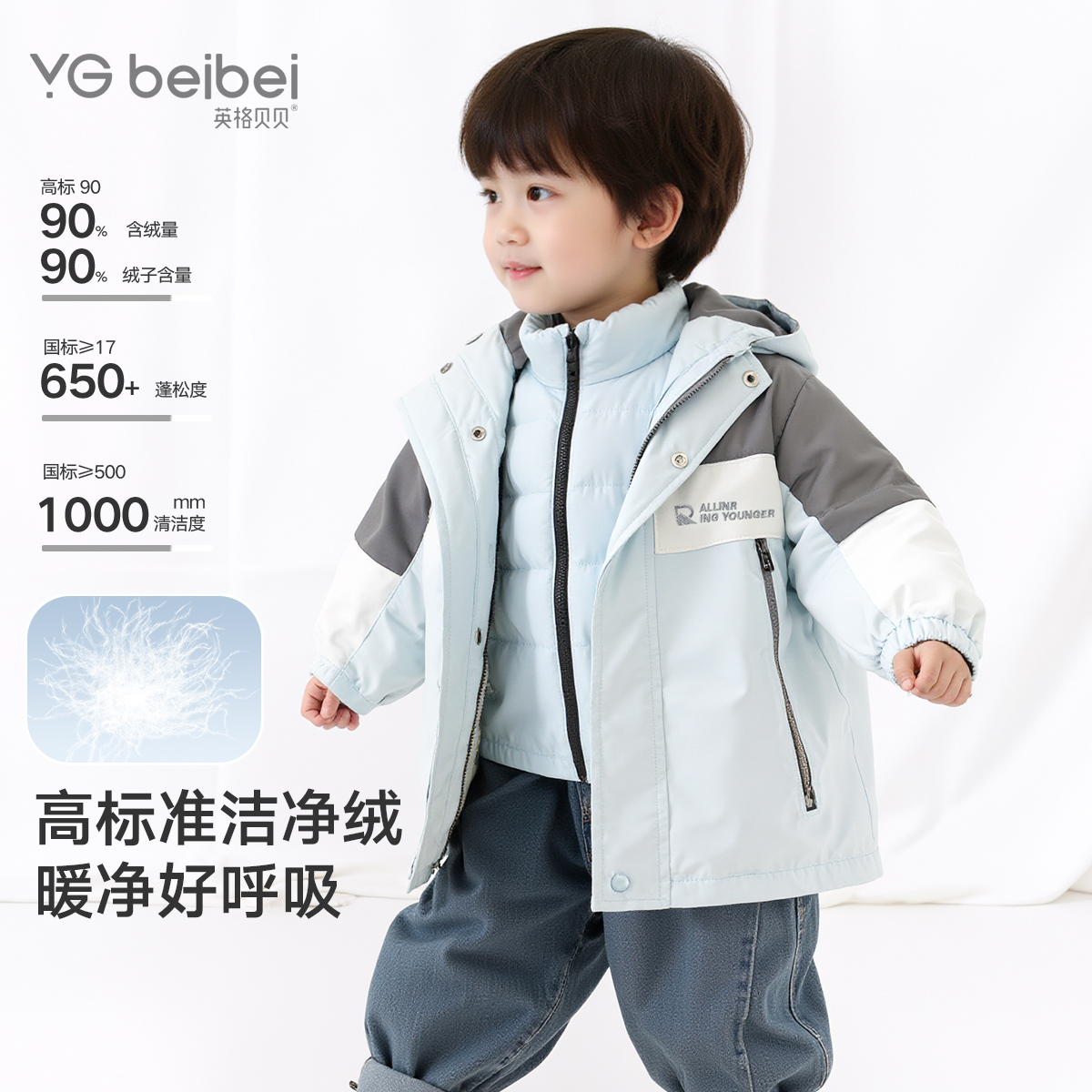 英格贝贝男宝宝羽绒服儿童90白鸭绒夹棉外套两件装羽绒内胆秋冬装