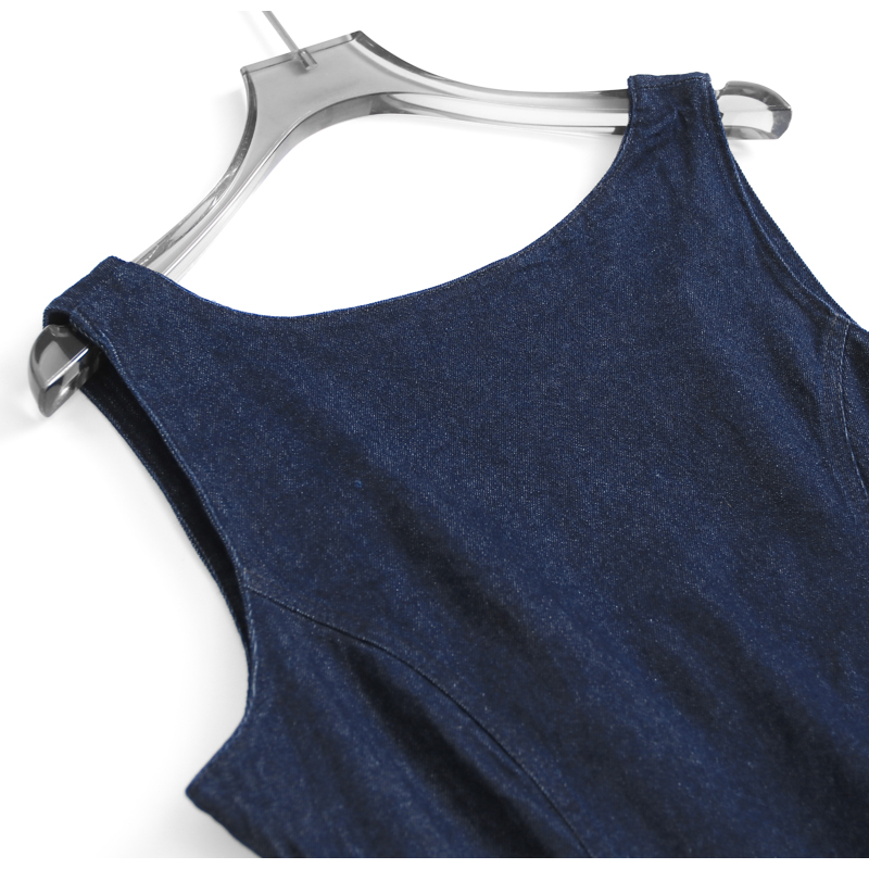 纯色显瘦修身圆领露背叠穿捏褶无袖背心裙女牛仔裙连衣裙短裙K334