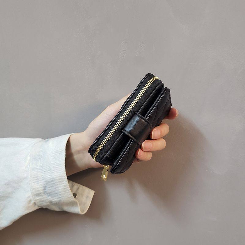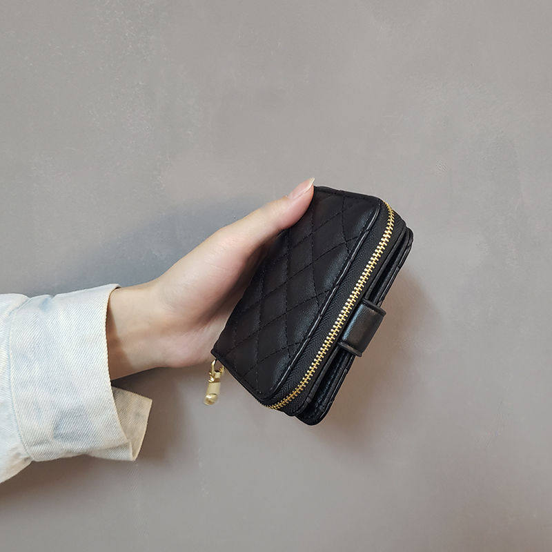 钱包女短款卡包二合一2025新款小众设计菱格拉链零钱包卡夹一体包