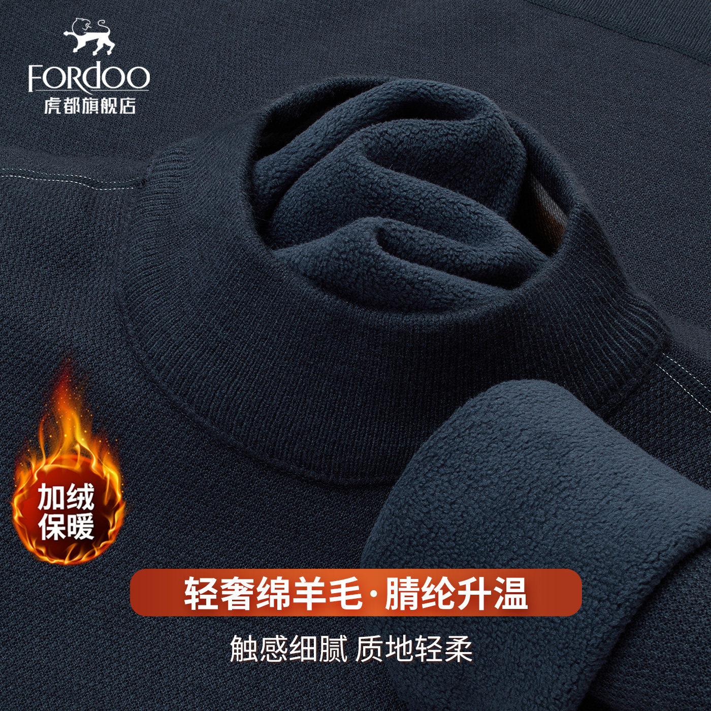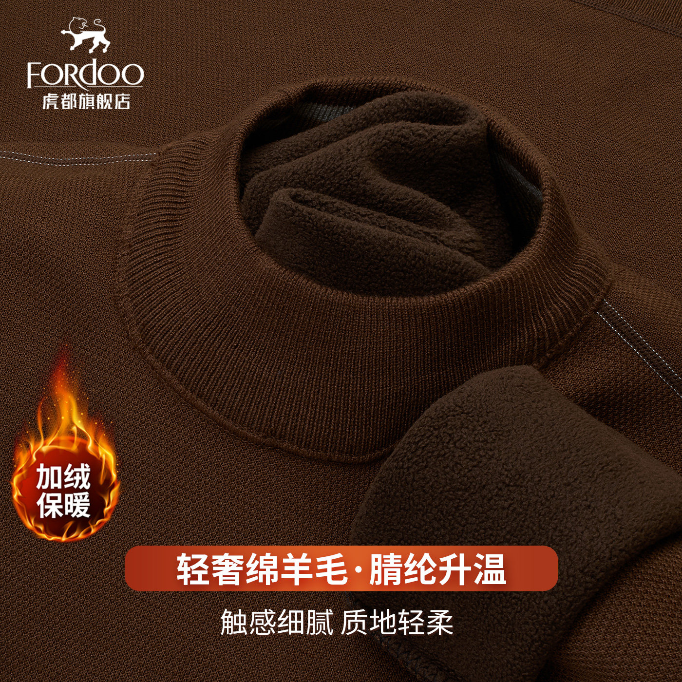 【内里绒毛】虎都男士加绒毛衣爸爸内搭冬装2025新款保暖打底上衣