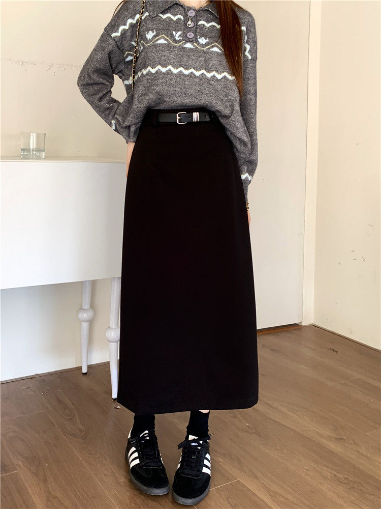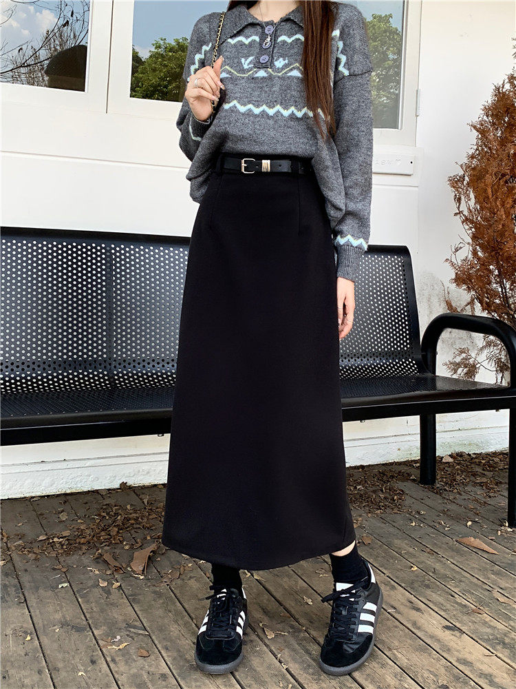 大码秋冬毛呢半身裙梨型身材中长款裙高腰一步包臀裙开叉a字长裙