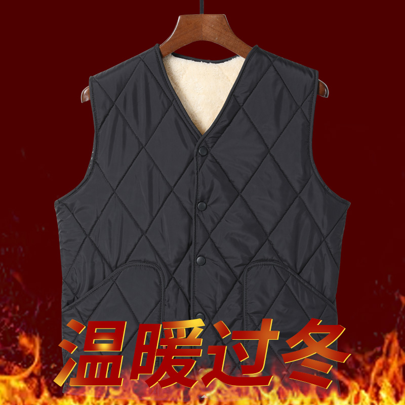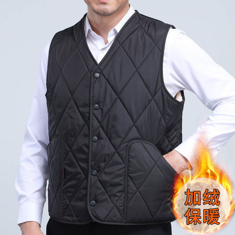 冬季男士加绒加厚爸爸棉马甲中老年保暖坎肩无袖马夹老人爷爷背心