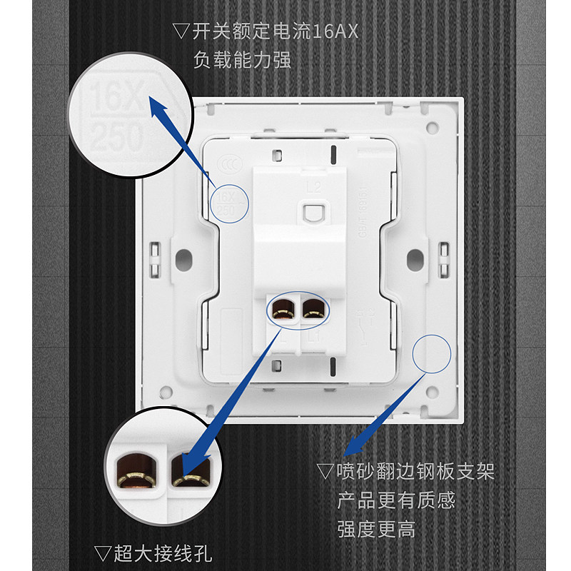 雷士开关Q18 钢架超薄插座面板釉白86型五孔USB一开双控三孔空调