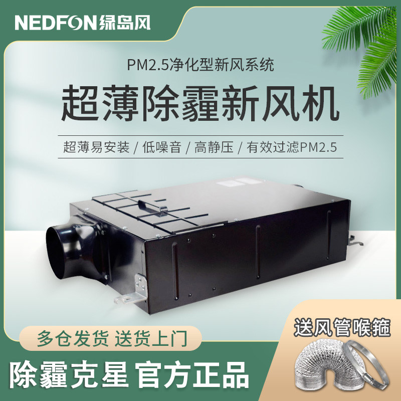 绿岛风超薄管道除霾新风机家用PM2.5空气净化器商用强力正压送风