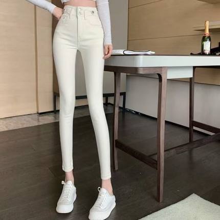 高腰弹力洋气白色牛仔裤女春秋季新款长裤紧身显瘦小脚铅笔裤子