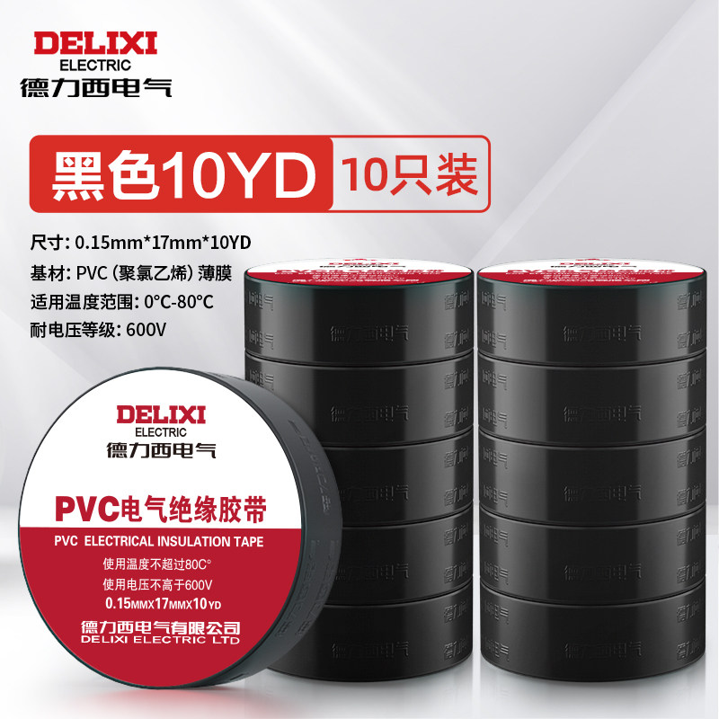 德力西电气电胶布电工配件10只装防触电绝缘胶布无铅PVC电气胶带