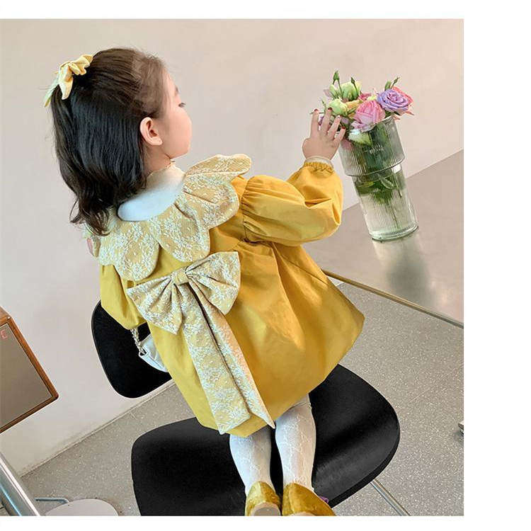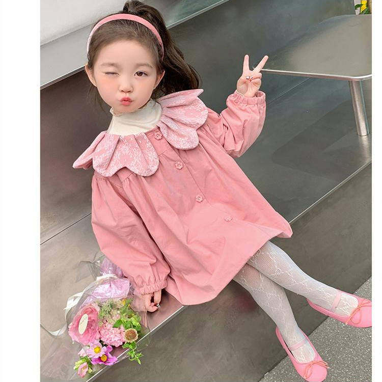 女童风衣春秋2024新款儿童洋气时髦圆领外套小童宝宝春装可爱上衣