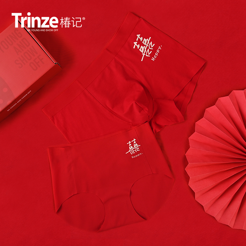 椿记原创红色结婚内衣内裤新娘新郎套装礼盒情侣喜字背心无痕文胸