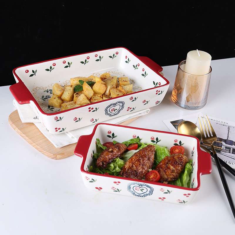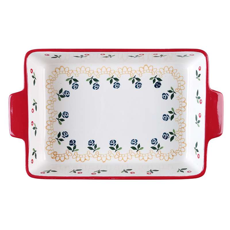 华孚创意樱桃陶瓷餐盘长方双耳烘焙盘家用烤箱烤盘菜盘汤盘沙拉盘