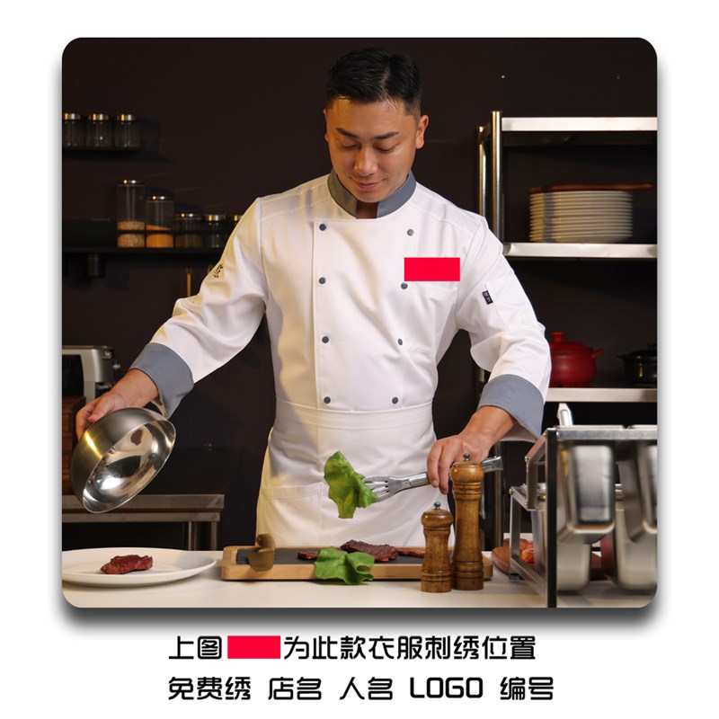 厨师工作服男女长袖秋冬新款厨房后厨定制定做高档大码餐饮厨师服