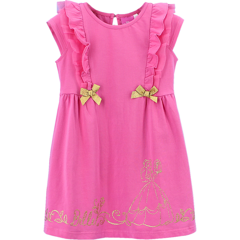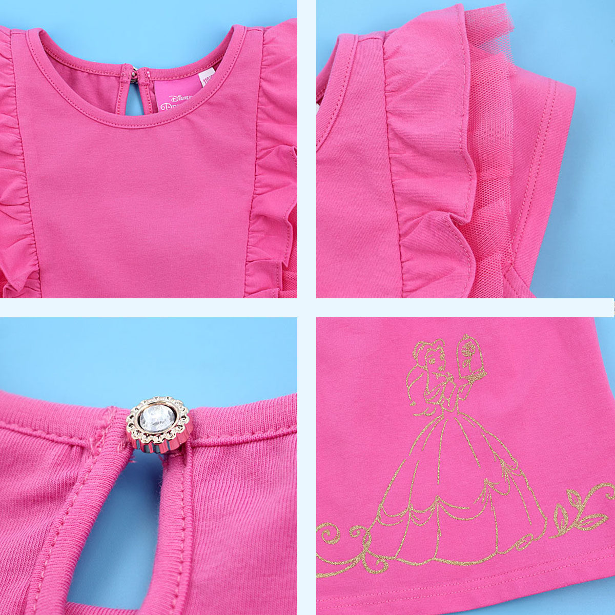 迪士尼童装女童夏季纯色裙子美女与野兽全棉淑女裙儿童短袖连衣裙