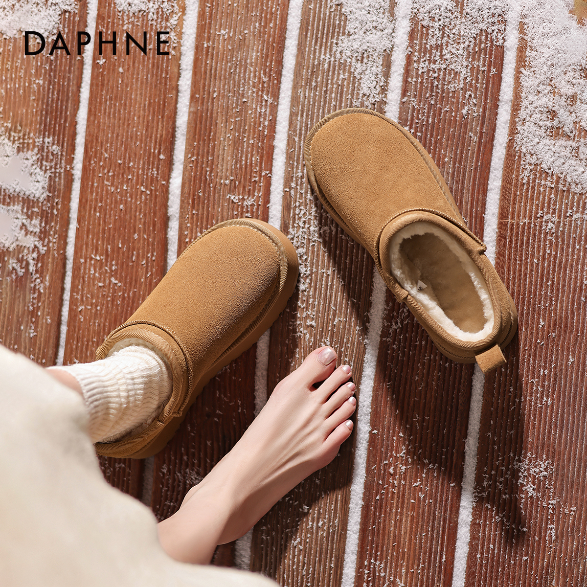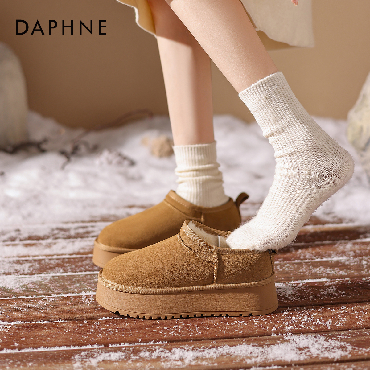 达芙妮厚底雪地靴女款2025新款冬季女鞋低帮加绒保暖棉鞋毛毛半拖