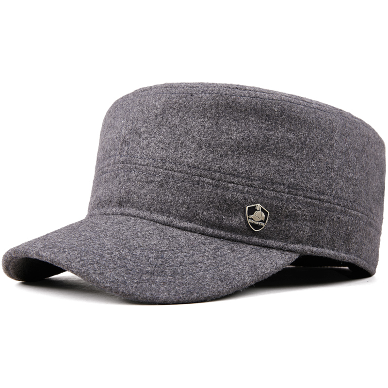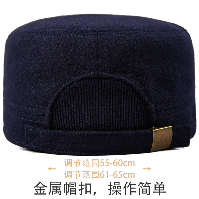 平顶帽子男秋冬季毛呢后封口全封闭保暖防寒防风户外休闲鸭舌帽