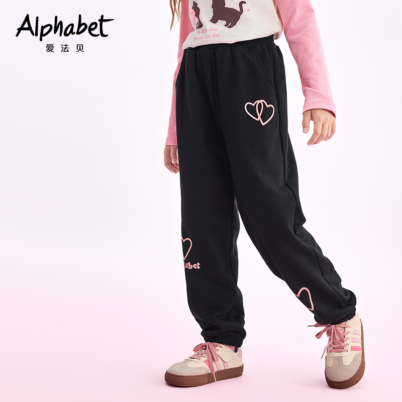 爱法贝2025秋冬新款女童休闲运动裤中大儿童装针织长裤子黑色百搭