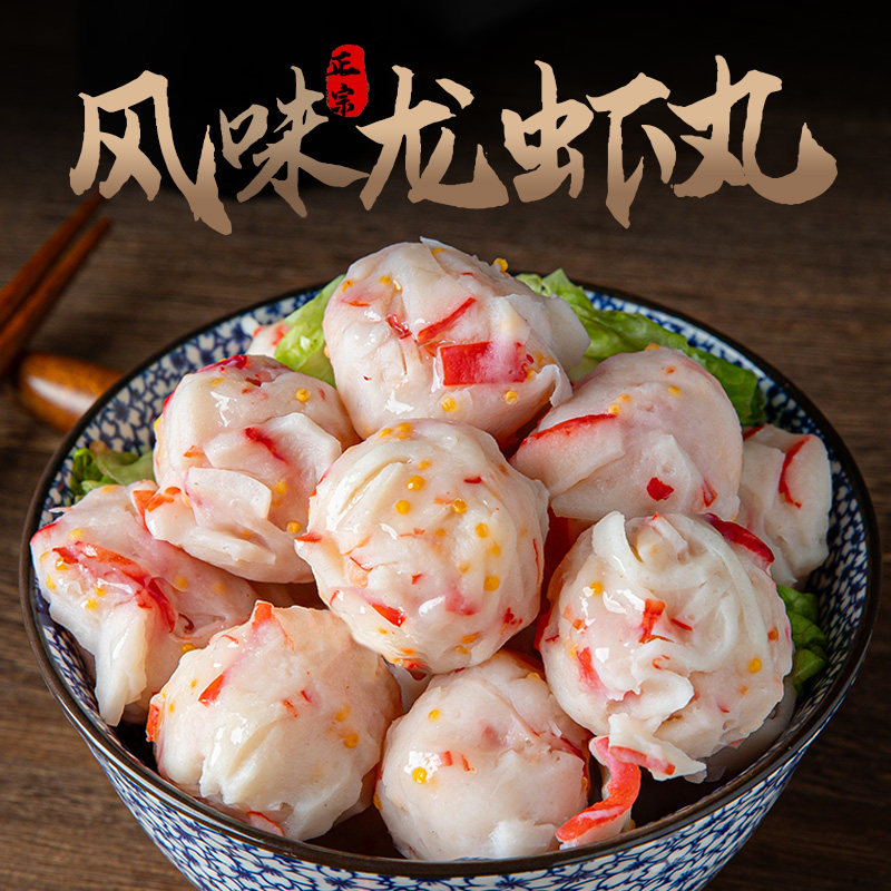 牛佳鲜潮汕龙虾风味丸球鱼丸高端海鲜丸子火锅食材蟹籽龙虾球商用