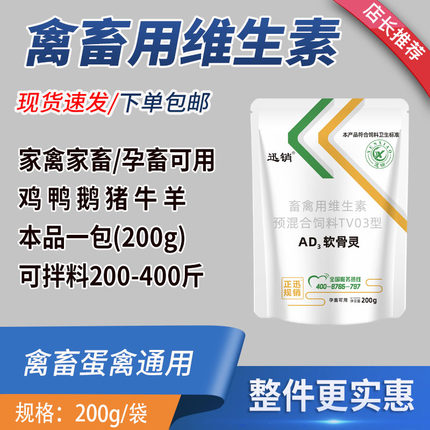 迅销禽畜用维生素AD软骨灵鸡鸭鹅猪牛羊通用饲料添加剂200g