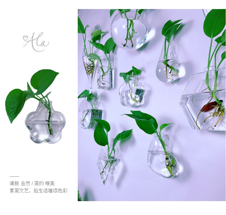 创意墙上壁挂花盆绿萝水培玻璃花瓶绿植餐厅简约客厅墙面壁饰挂件