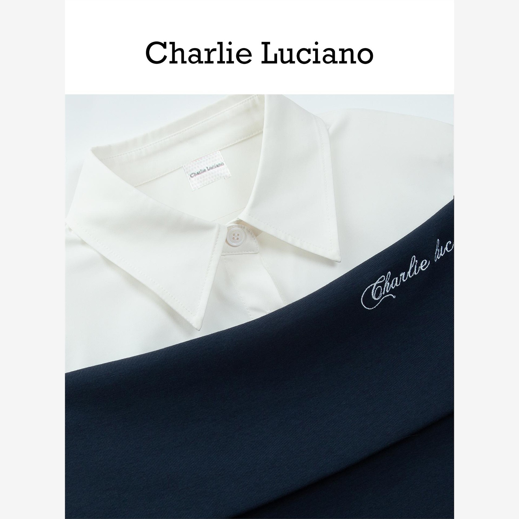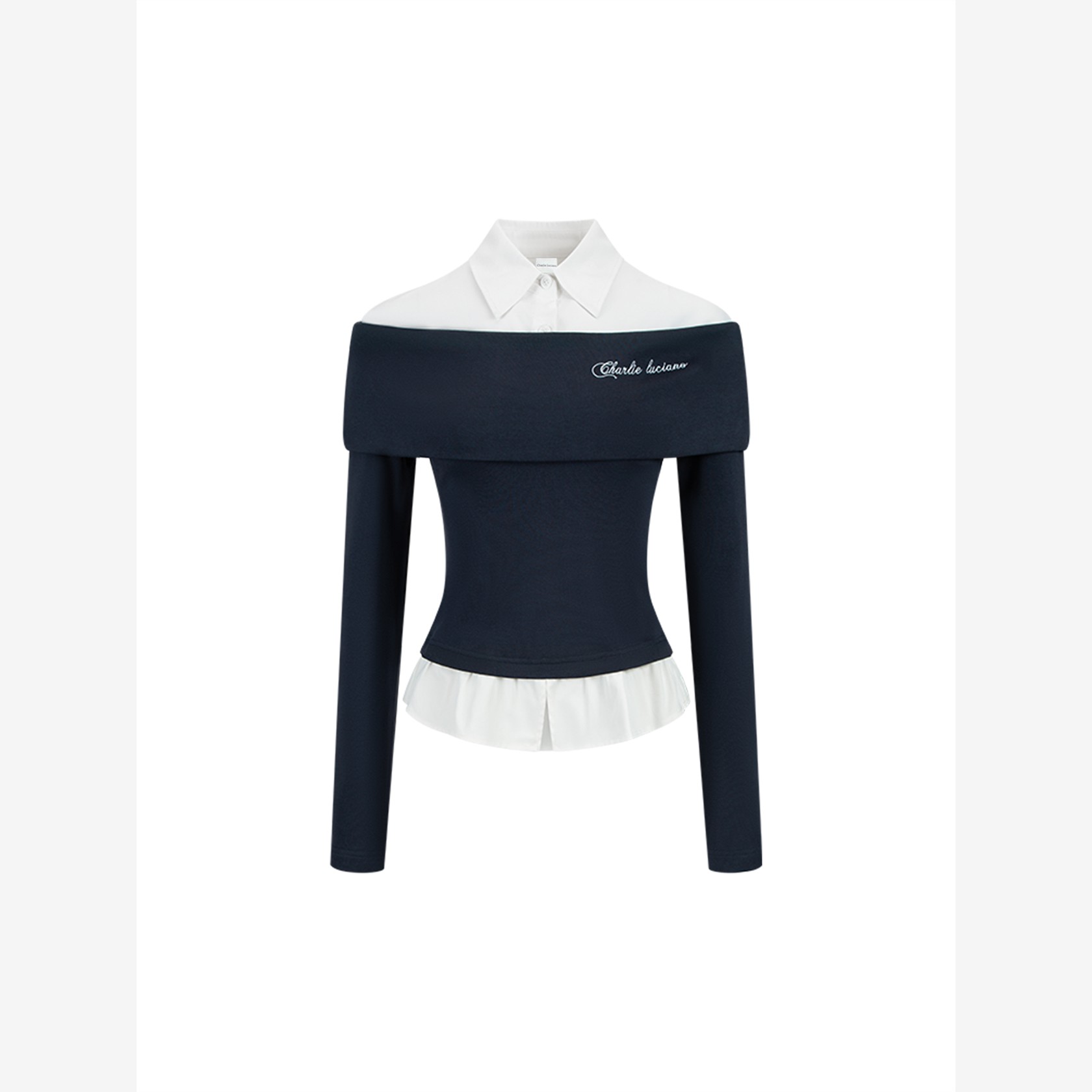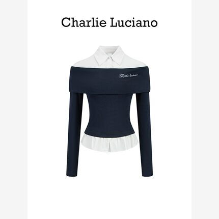 Charlie Luciano一字肩拼接衬衫秋季新款潮牌设计感假两件上衣女