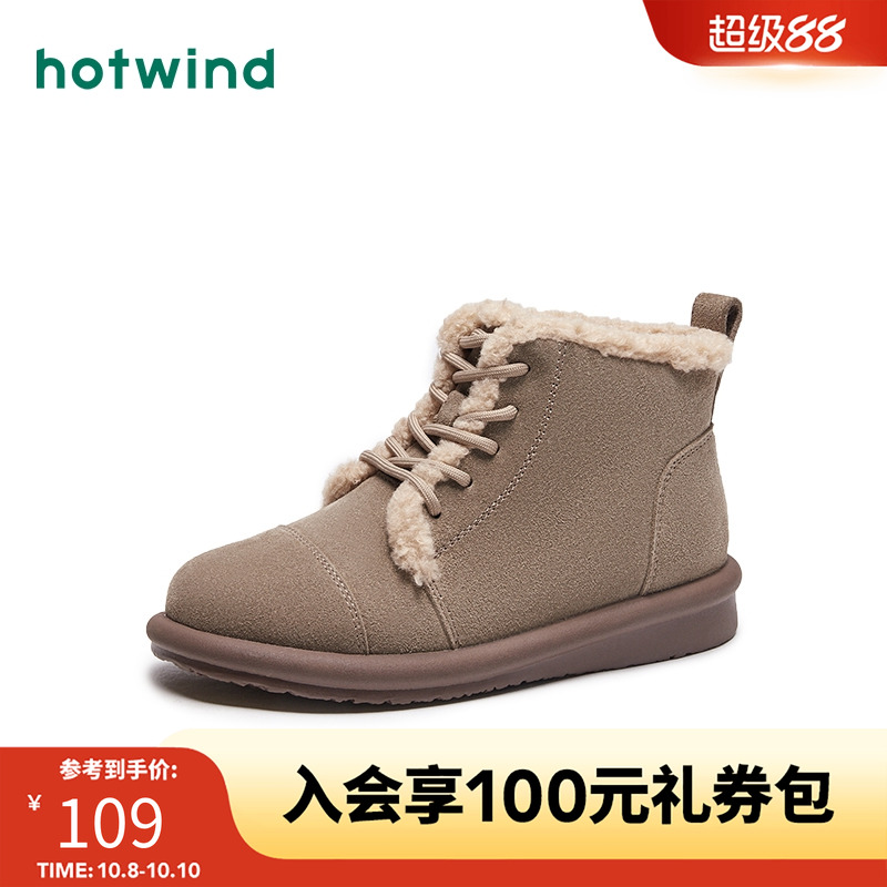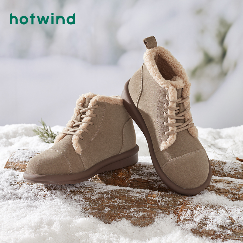 热风2023年冬季女士时尚加绒加厚休闲靴保暖短筒雪地靴潮