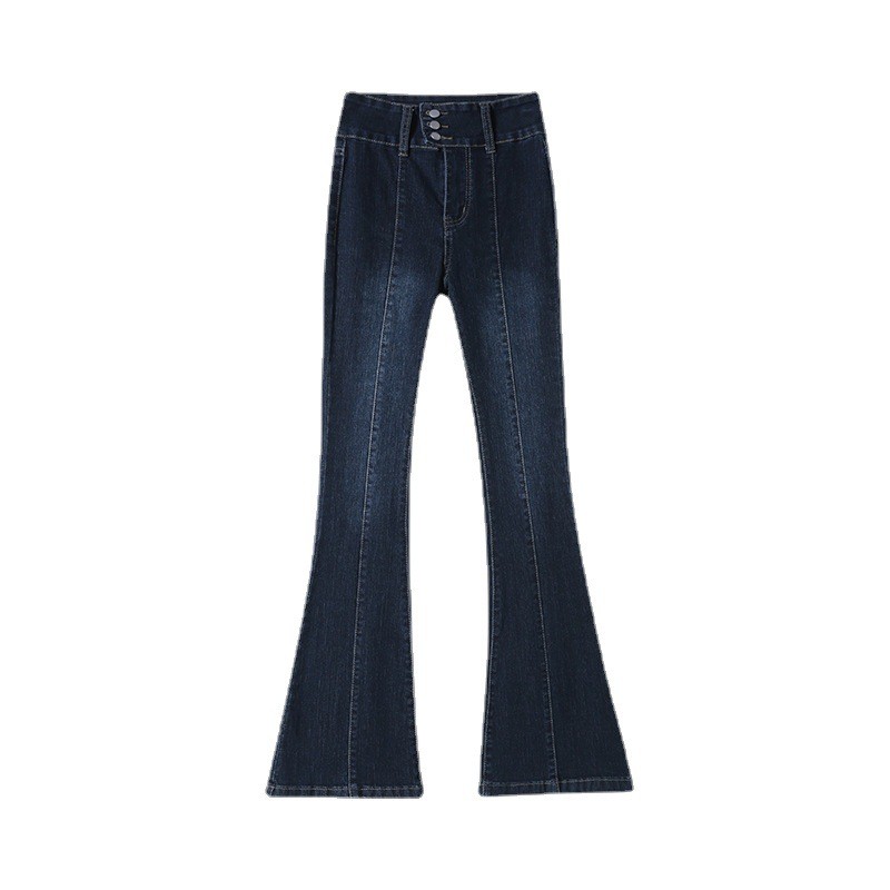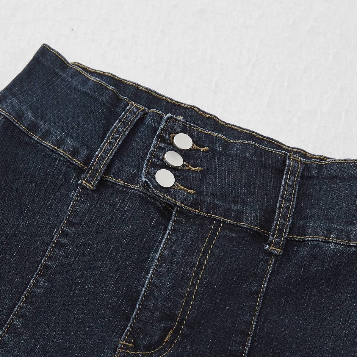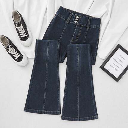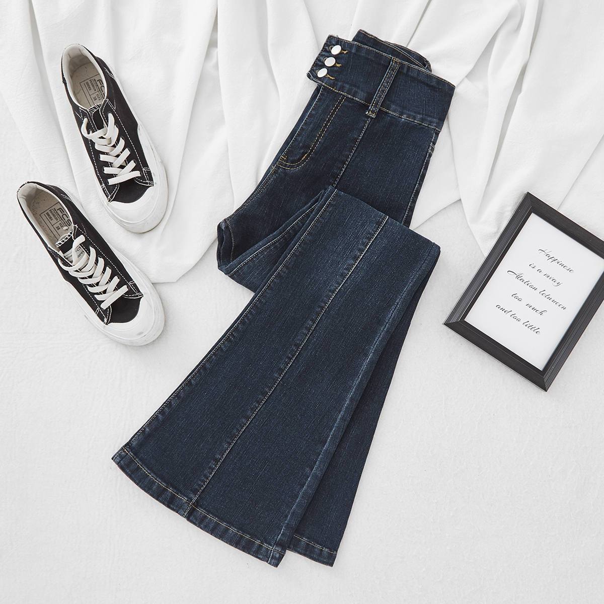 特大码300斤胖mm复古超高腰显瘦春秋新款修身三排扣微喇牛仔裤女