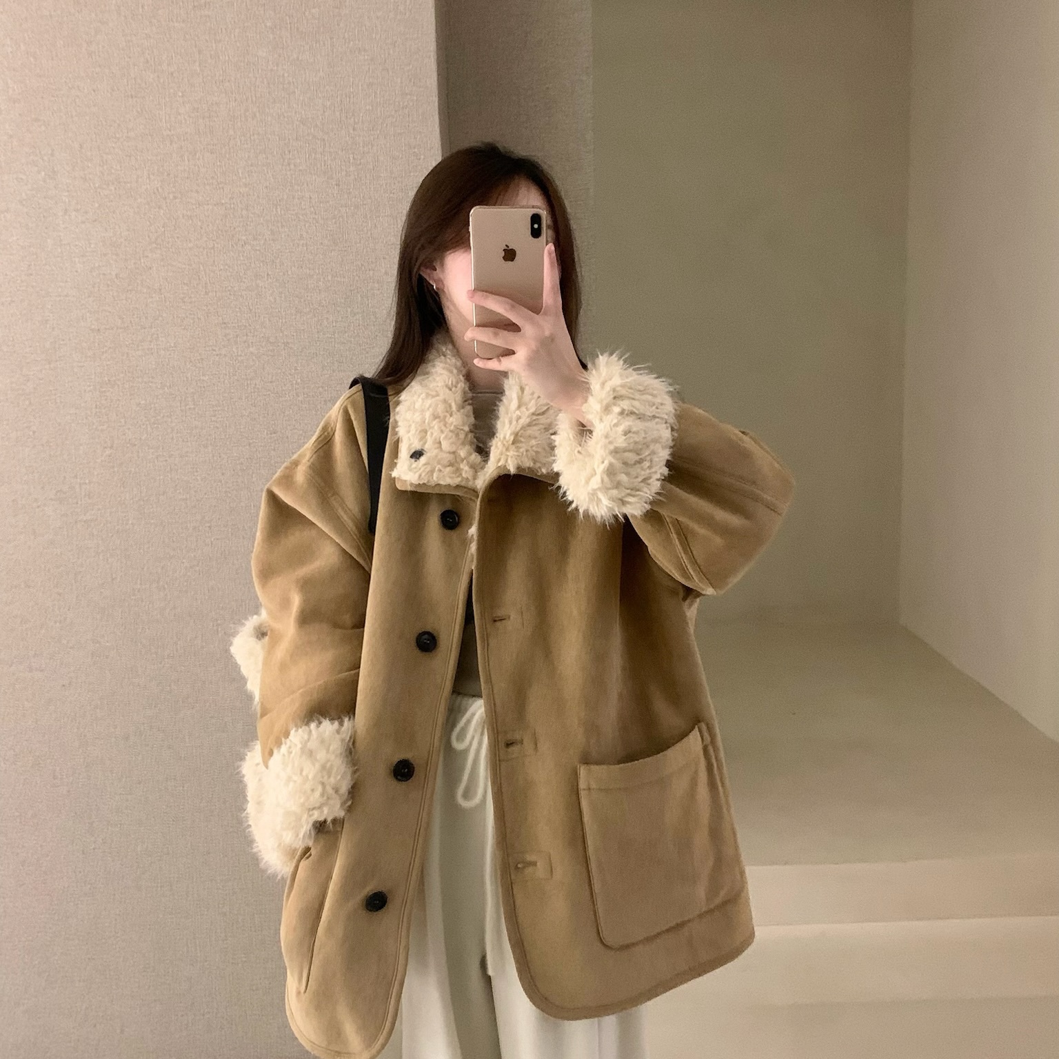 超级大爆款冬氛围感不挑人穿中长款立领保暖皮毛一体外套(配毛毛
