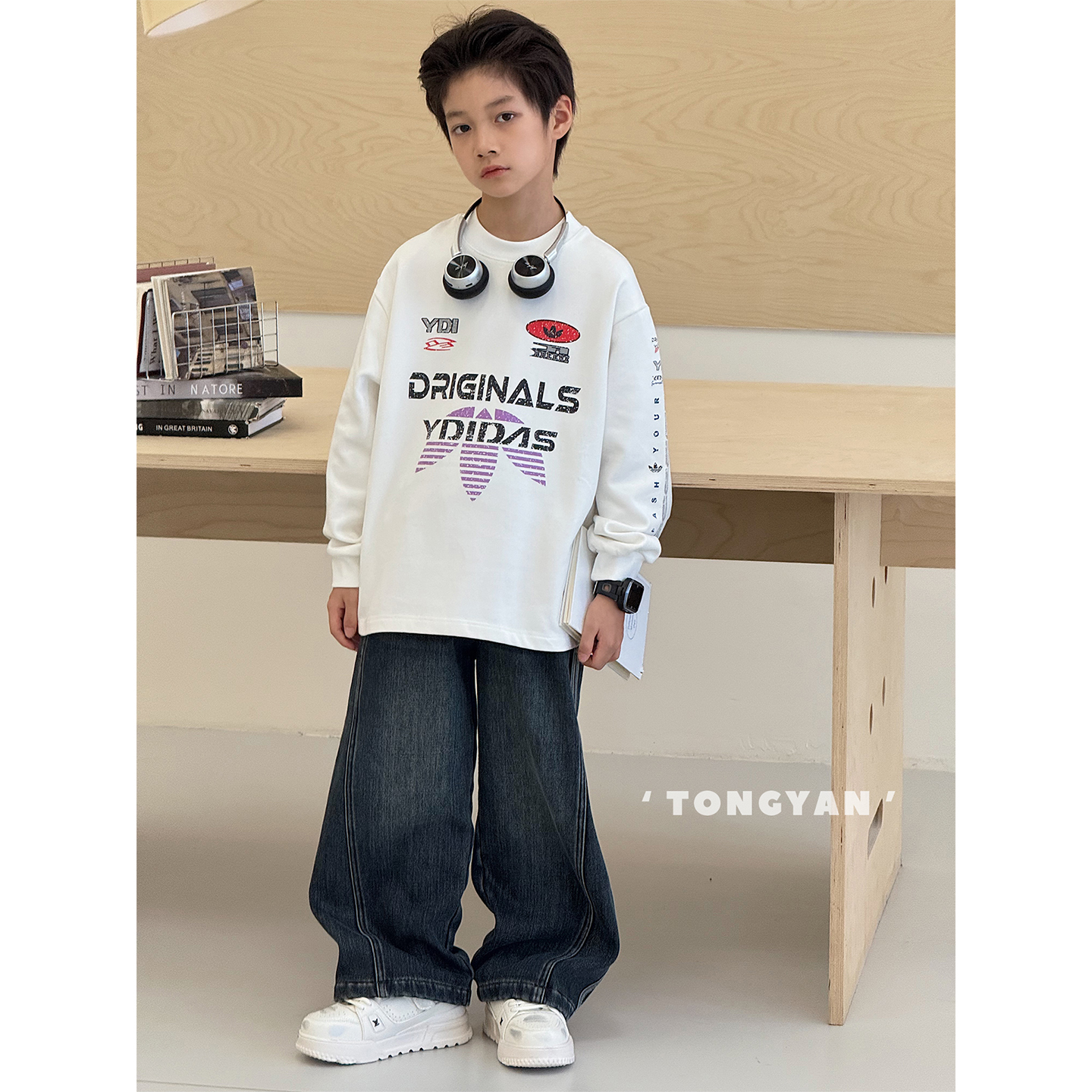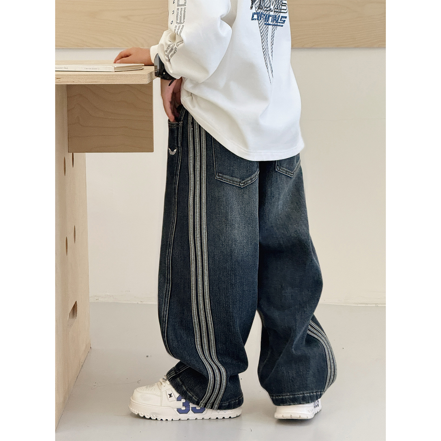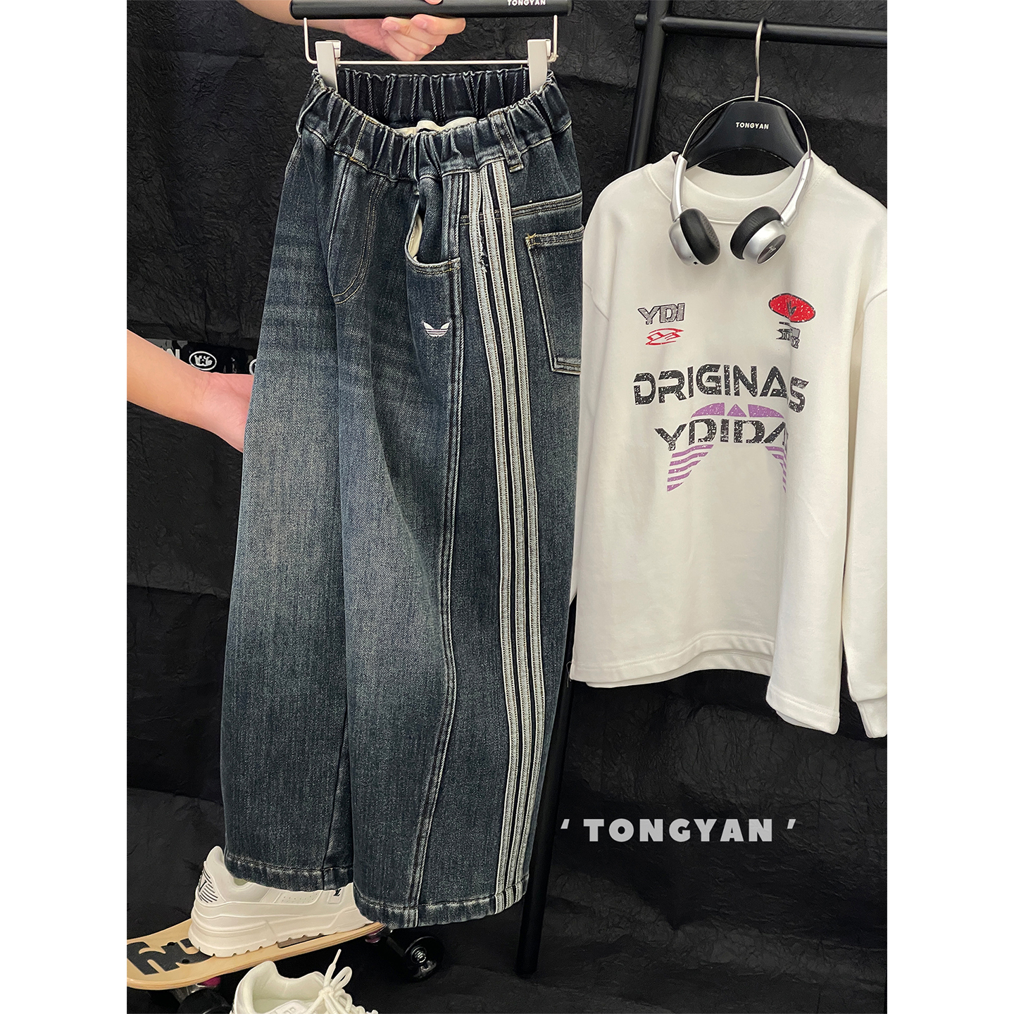 男童加绒裤子2025冬装新款儿童厚牛仔裤港风棉裤一体绒中大童长裤