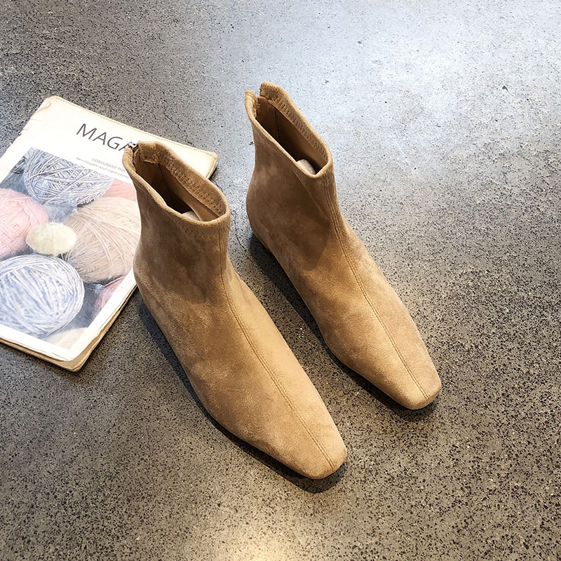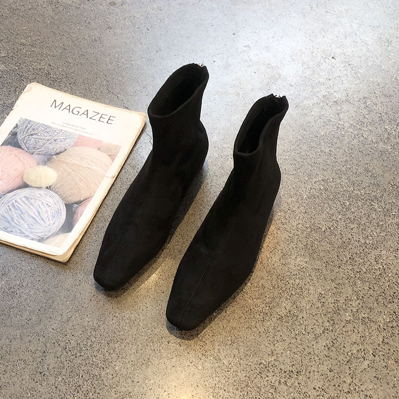 内增高简约方头绒面瘦瘦靴子女2025年秋冬新款后拉链显瘦气质短靴