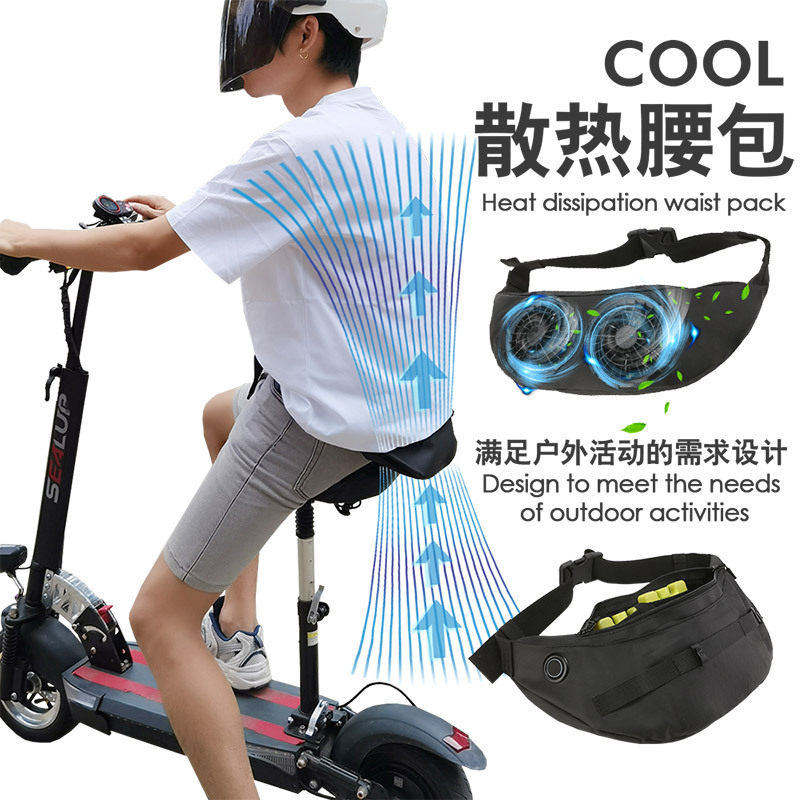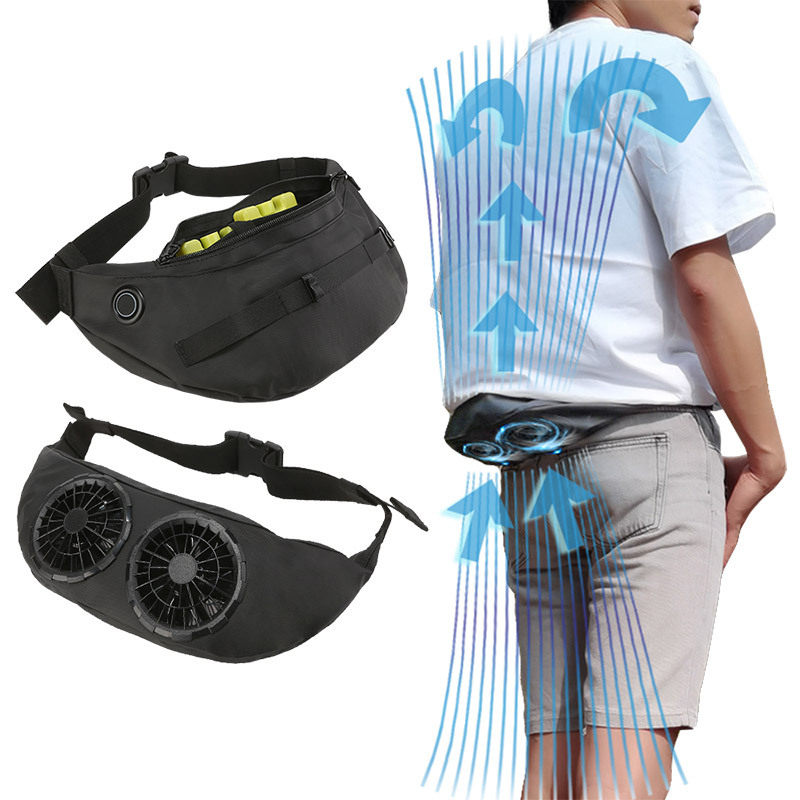 夏男女户外运动多功能挂腰风扇腰包带风扇物理降温散热风扇腰间包