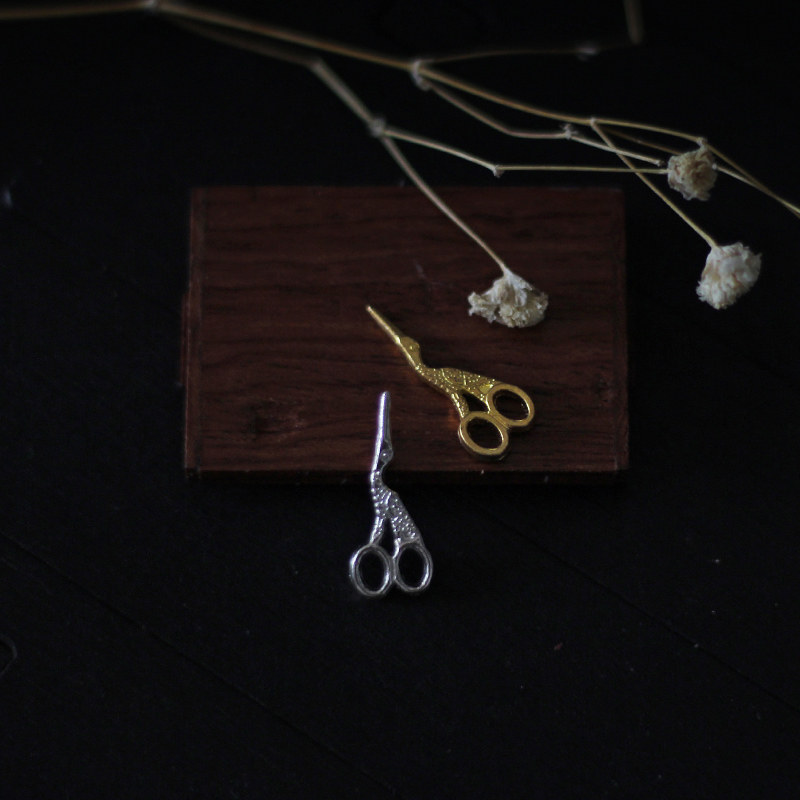 娃娃屋diy配件微缩金色鸟剪刀模型迷你食玩创意摆件生活场景H119