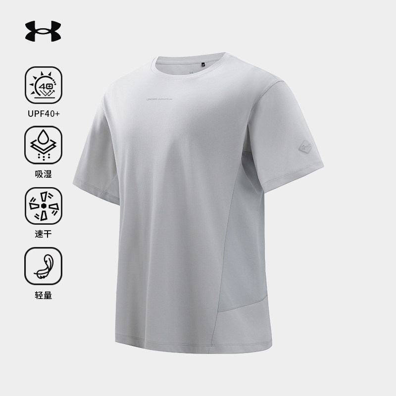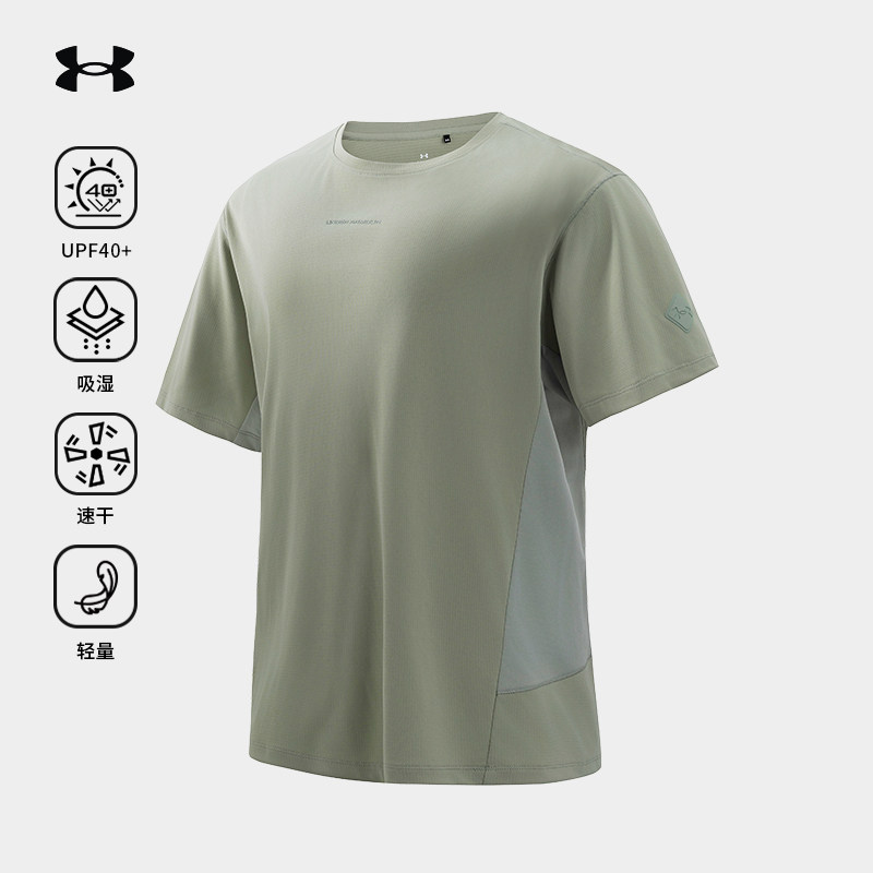 安德玛UA官方防晒短袖T恤男休闲徒步运动透气纯色圆领吸湿速干衣