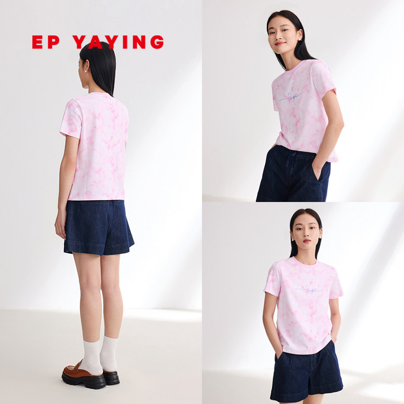 EP YAYING雅莹女装 长绒棉印花正肩短袖t恤 商场同款5345A