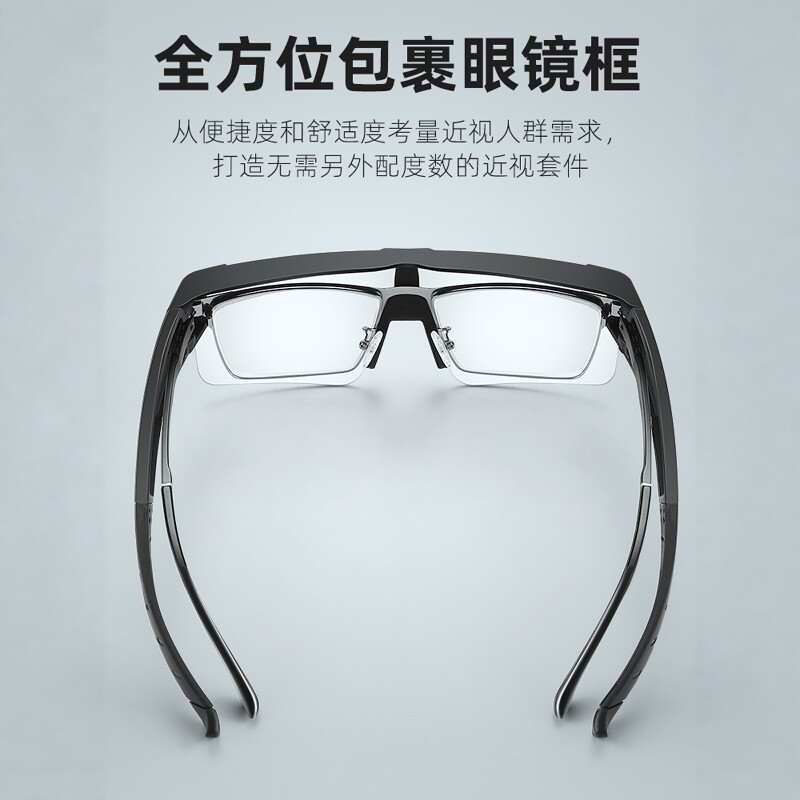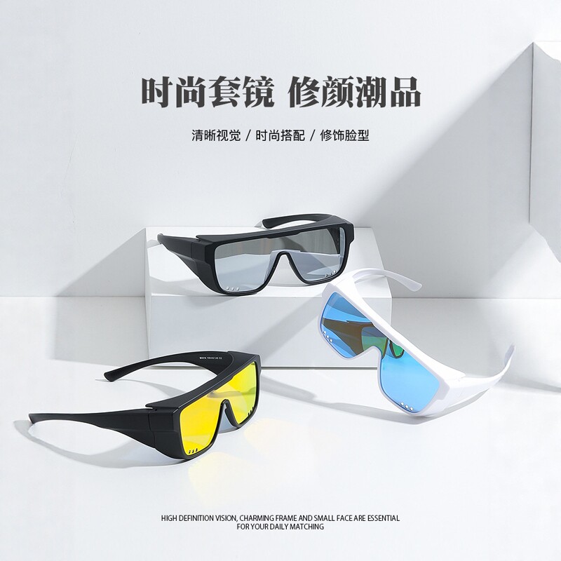 侧防风骑行眼镜可套近视镜防风沙偏光户外运动护目镜变色日夜两用