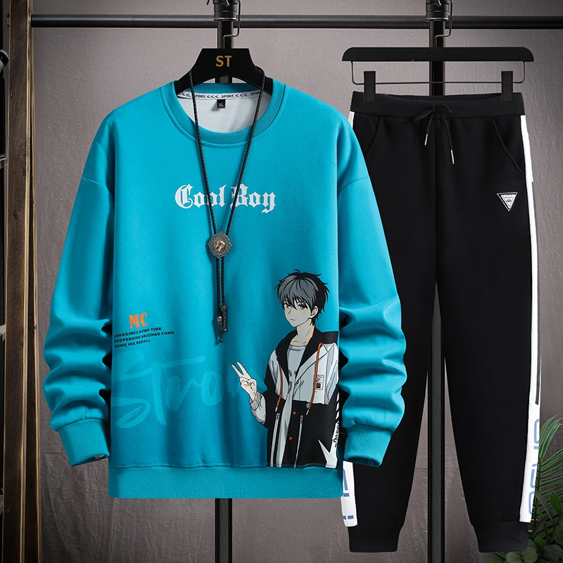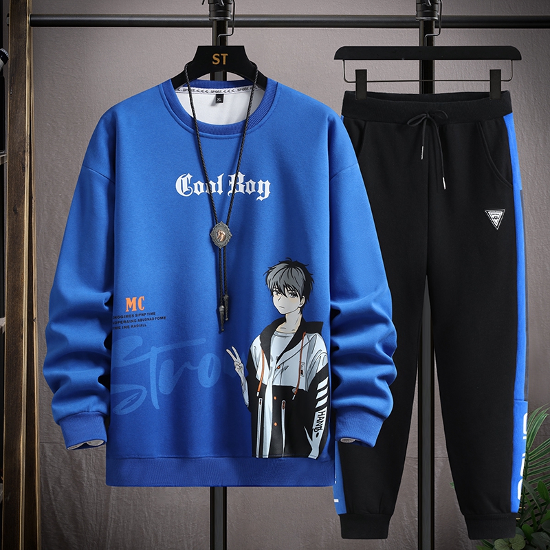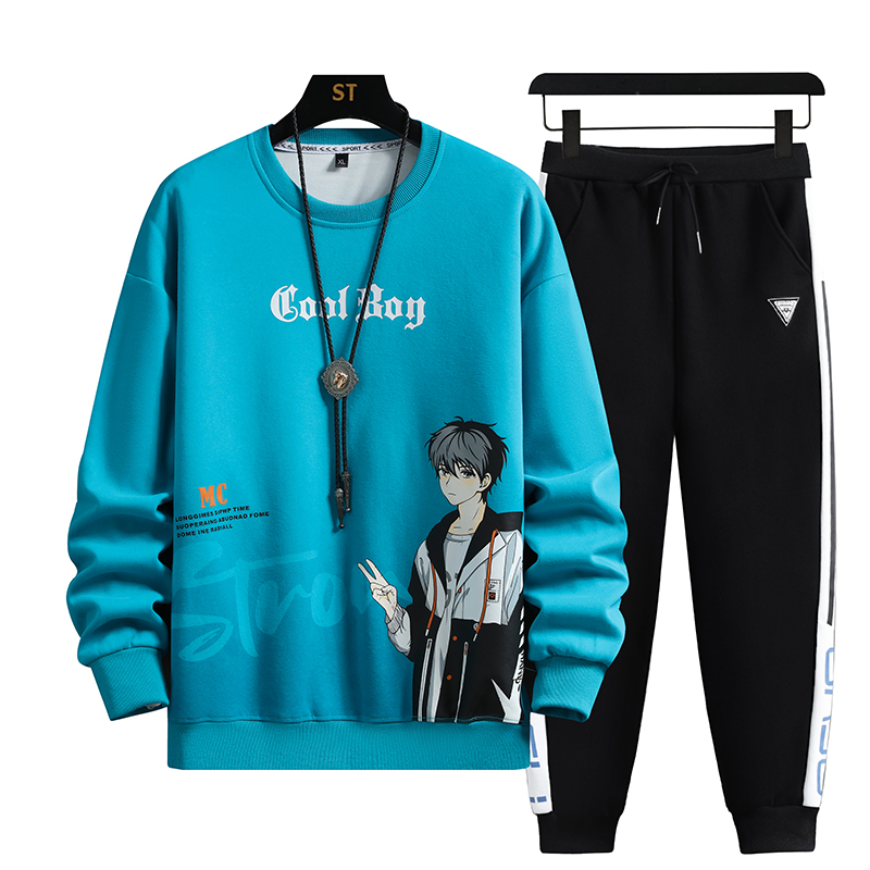 冬装小学生加绒春秋卫衣男孩帅气青少年大童运动套装长袖t恤上衣